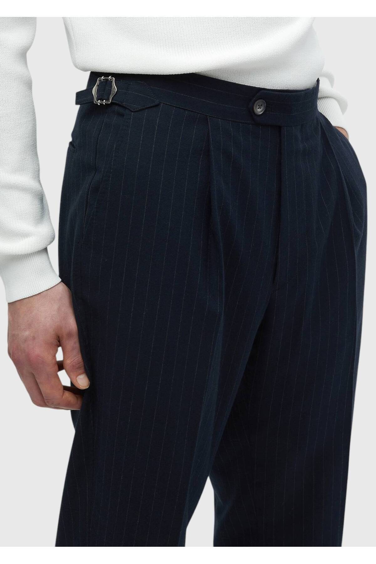 خرید اینترنتی شلوار غیررسمی گشاد بافته شده راه راه آبی سرمه ای برند رمزی Ramsey اورجینال از RAMSEY نمایندگی ترکیه