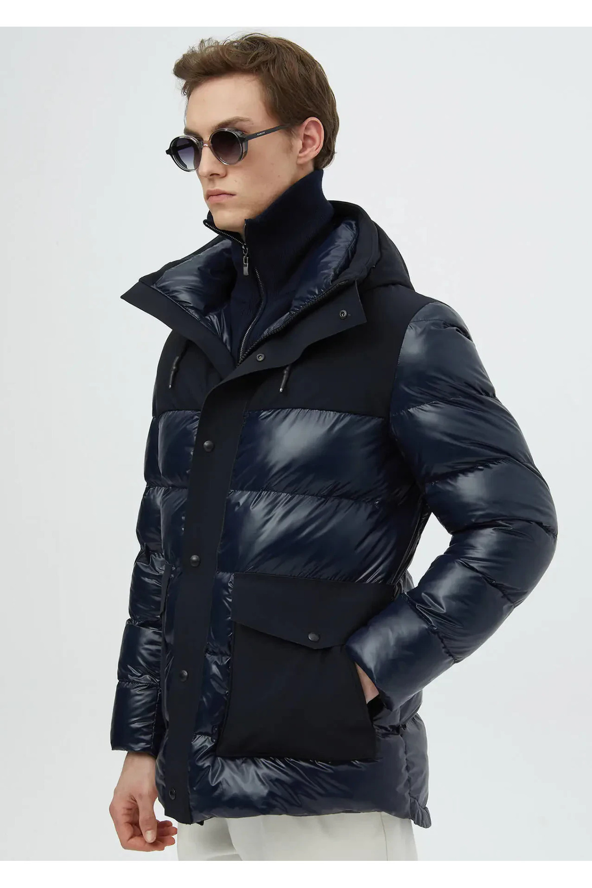 خرید اینترنتی مانتو بافته شده با کلاه معمولی آبی سرمه ای برند رمزی Ramsey اورجینال از RAMSEY نمایندگی ترکیه