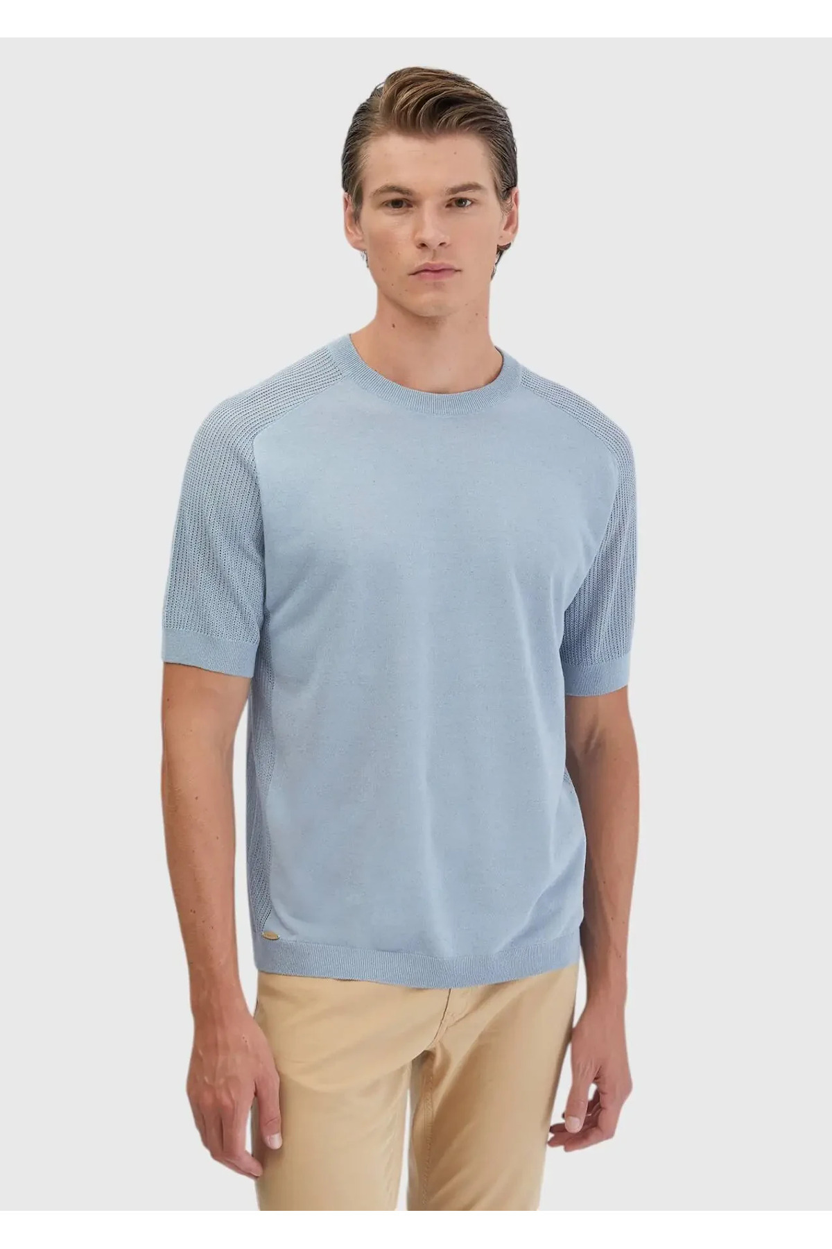خرید اینترنتی پلیور ترکیبی کتانی یقه ژاکارد آبی روشن برند رمزی Ramsey اورجینال از RAMSEY نمایندگی ترکیه