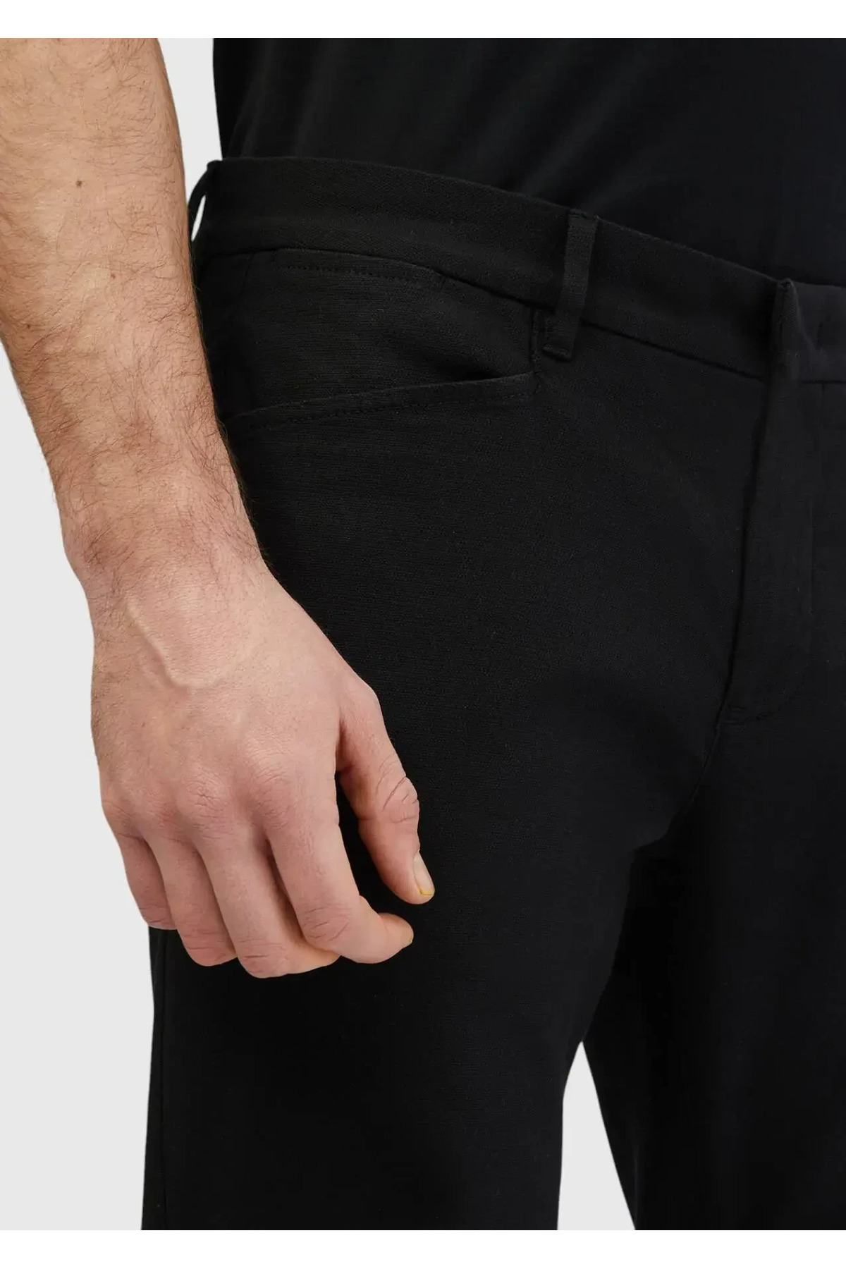 خرید اینترنتی شلوار ترکیبی نخی معمولی با بافت ساده مشکی برند رمزی Ramsey اورجینال از RAMSEY نمایندگی ترکیه