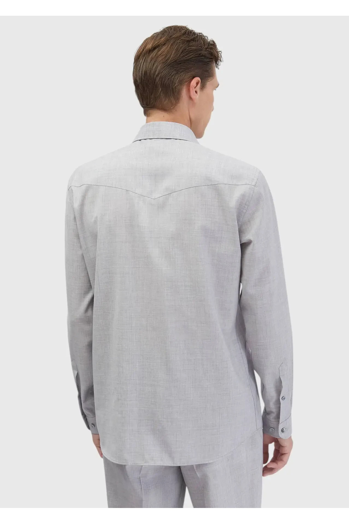 خرید اینترنتی پیراهن کلاسیک 100% پشمی بافته شده معمولی ساده خاکستری روشن برند رمزی Ramsey اورجینال از RAMSEY نمایندگی ترکیه
