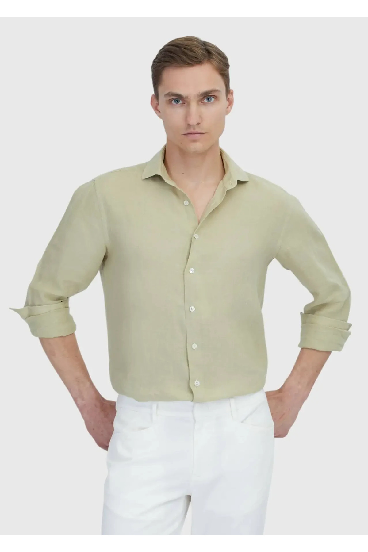 خرید اینترنتی پیراهن گاه به گاه ساده بافته شده 100% کتانی سبز روشن برند رمزی Ramsey اورجینال از RAMSEY نمایندگی ترکیه