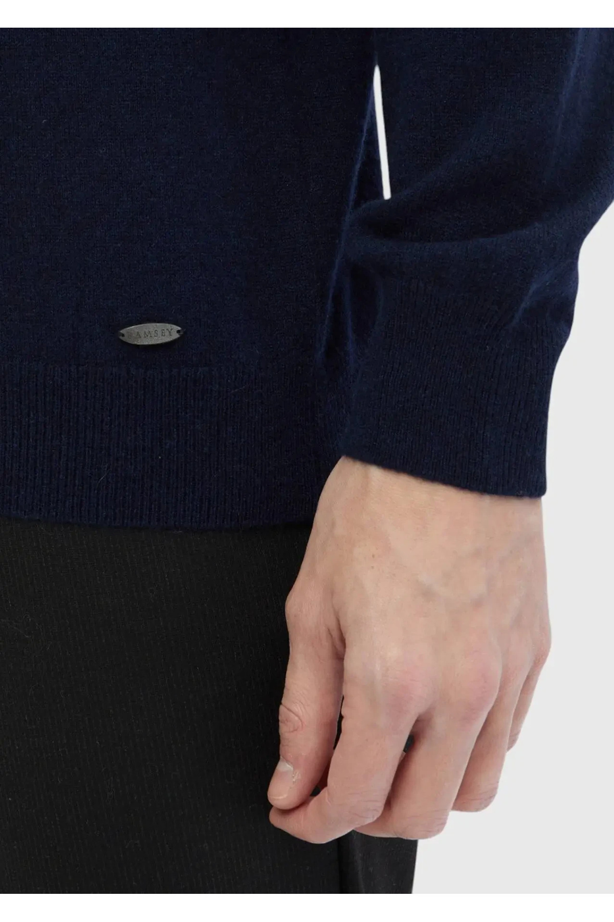 خرید اینترنتی سویشرت بافتنی ساده یقه آبی نیروی دریایی 100% کشمیر برند رمزی Ramsey اورجینال از RAMSEY نمایندگی ترکیه