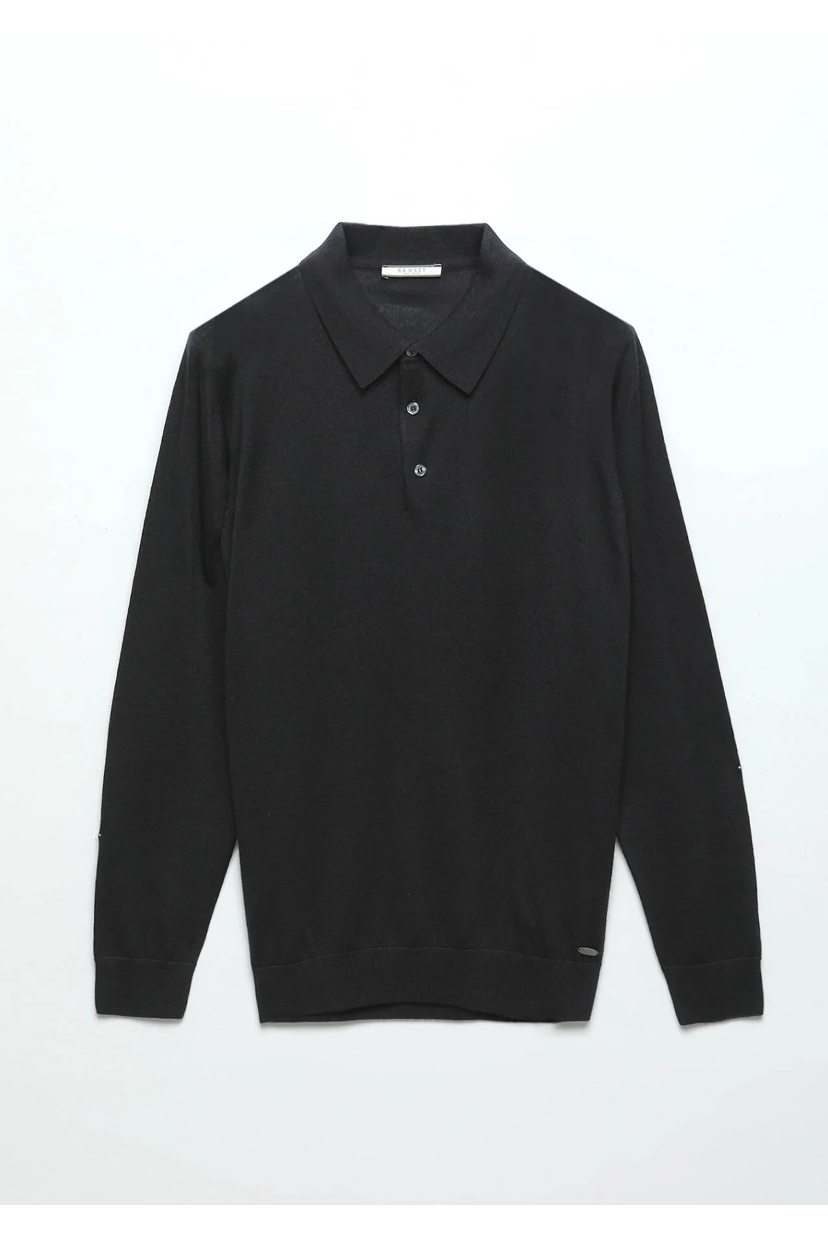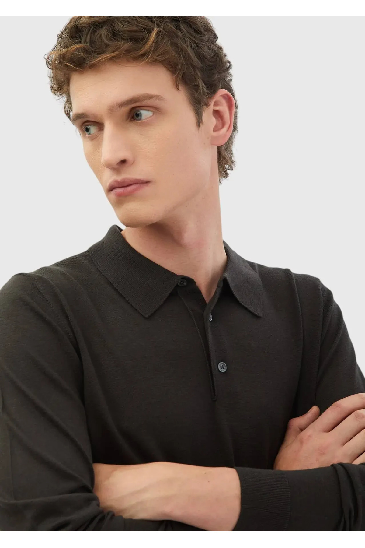 خرید اینترنتی ژاکت پشمی ساده بافتنی با یقه پولو آنتراسیت برند رمزی Ramsey اورجینال از RAMSEY نمایندگی ترکیه