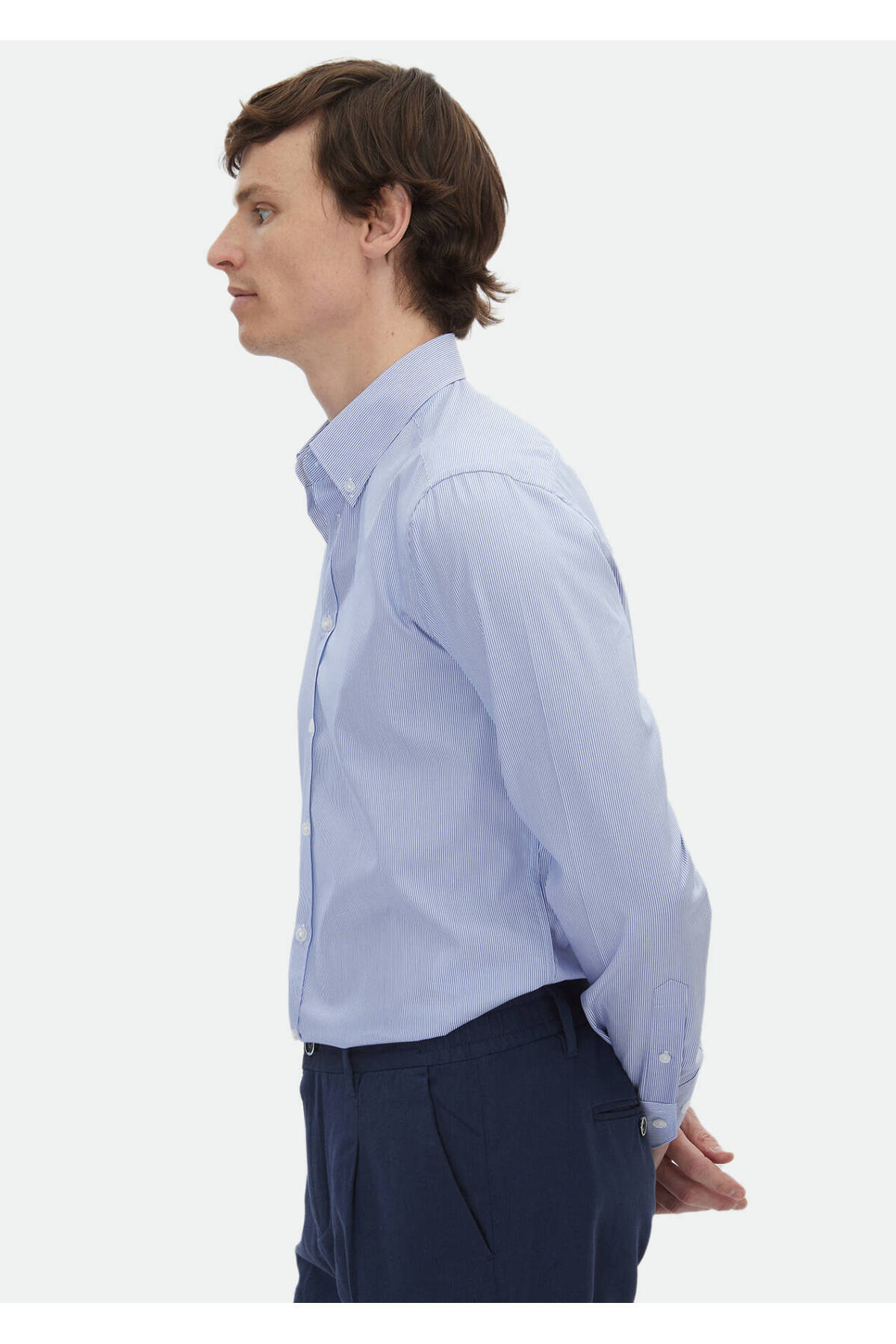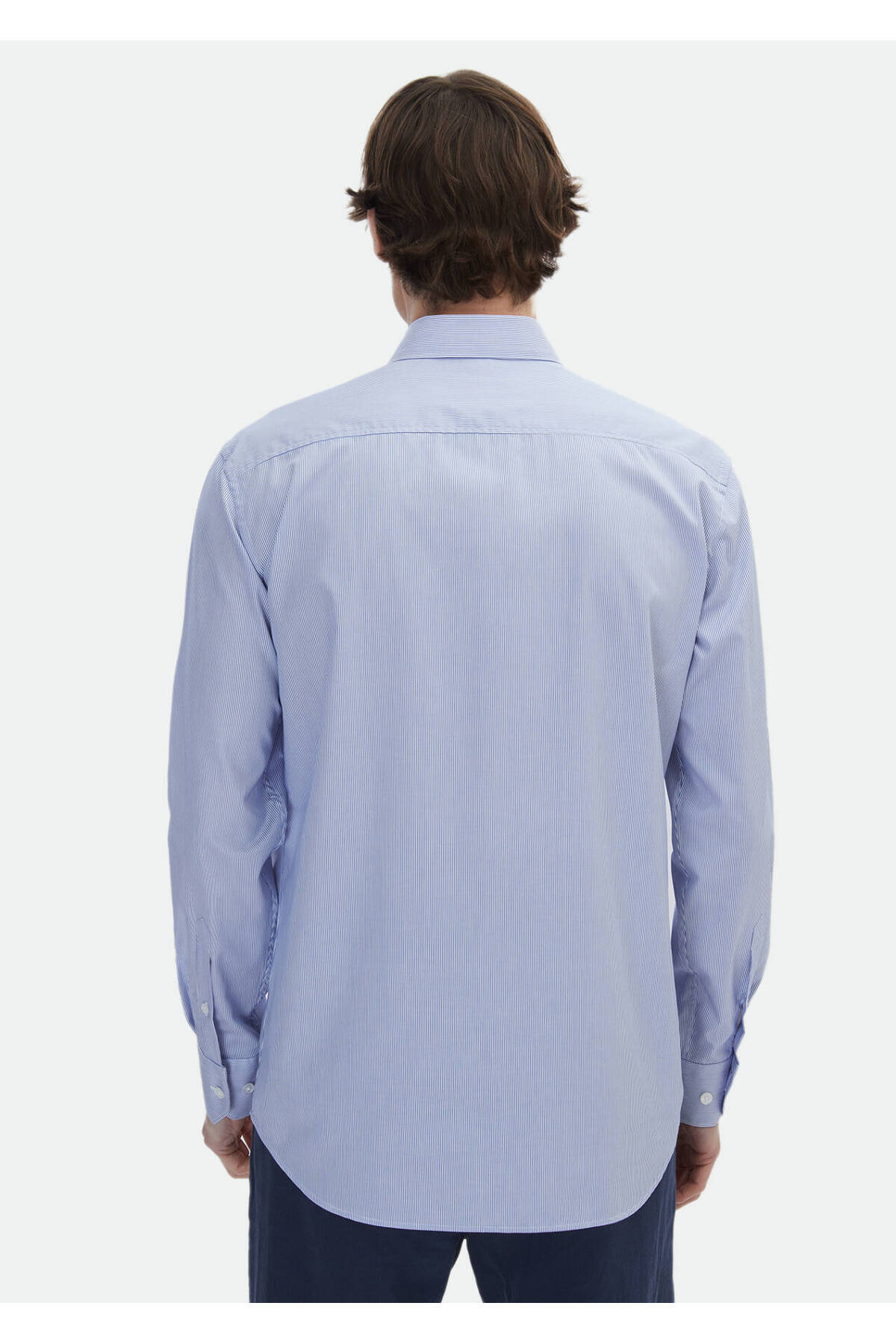 خرید اینترنتی پیراهن 100% نخی کلاسیک بافته شده منظم با راه راه آبی سرمه ای برند رمزی Ramsey اورجینال از RAMSEY نمایندگی ترکیه