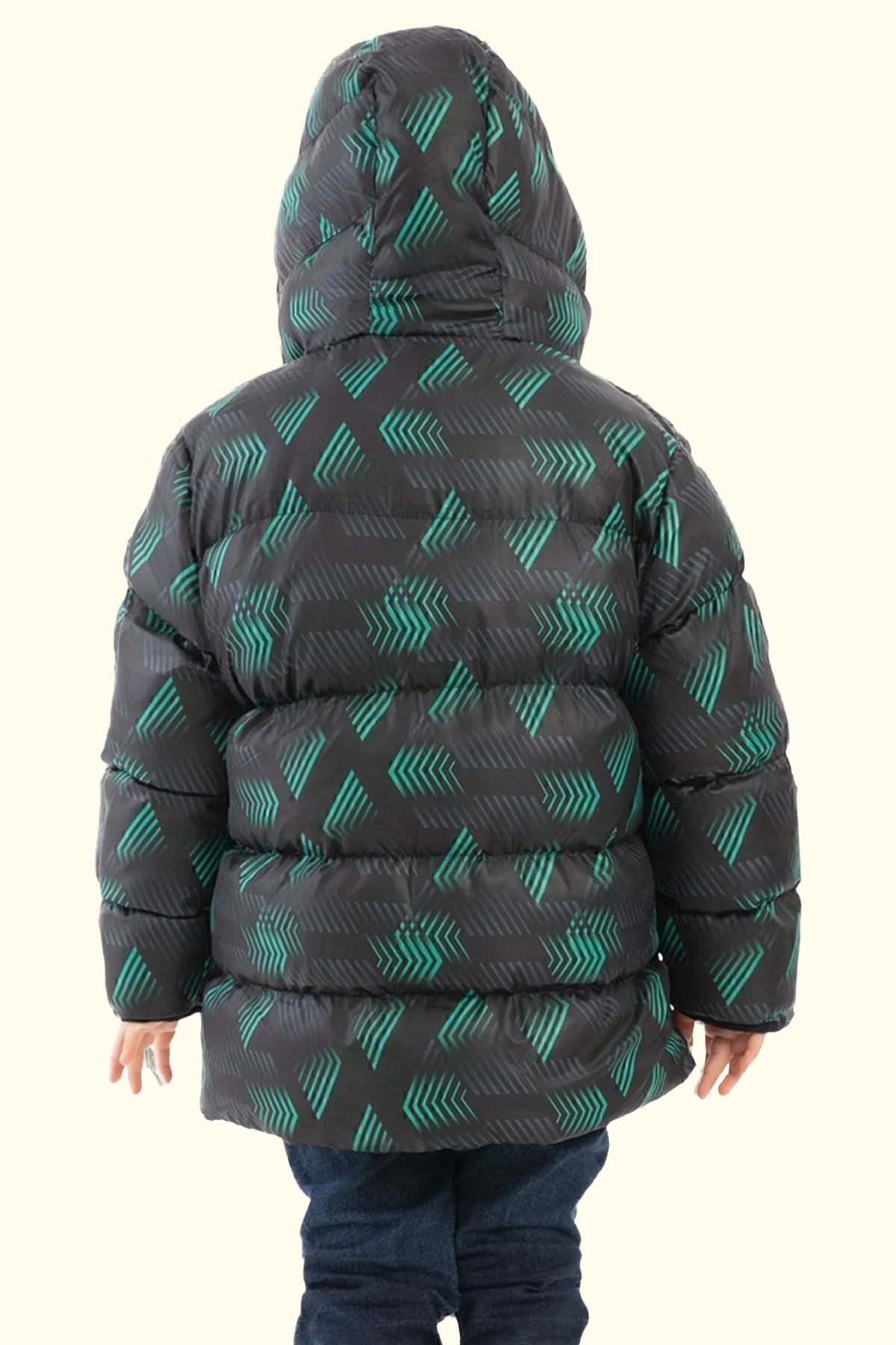 خرید اینترنتی کاپشن زمستانی پفی کلاه دار ضد آب و باد، طرح دیجیتال مشکی و سبز پسرانه برند Royalside اورجینال از Royal Side نمایندگی و فروشگاه معتبر ترکیه