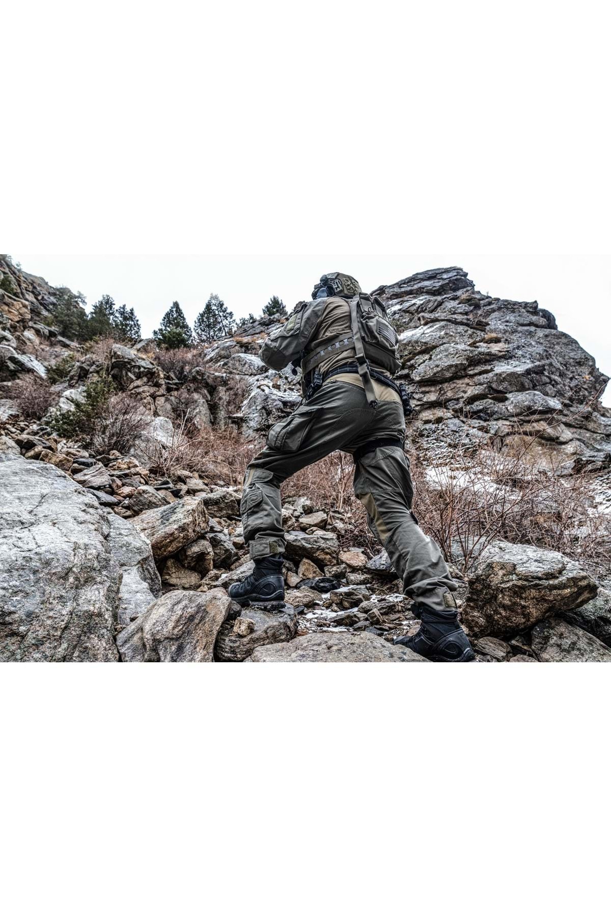 ضخیمتر از چرم کفش معمولی برای افزایش دوام. این کفش، کشش و پشتیبانی یک کفش کوهنوردی را ارائه میدهد، در عین حال انعطافپذیری لازم برای زانو زدن یا دویدن در زمینهای ناهموار را نیز فراهم میکند.