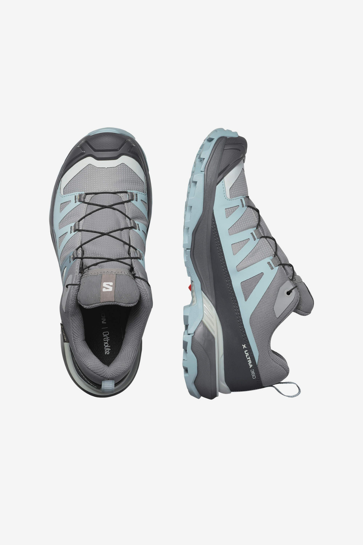 خرید اینترنتی کفش‌های فضای باز زنانه X Ultra 360 GTX خاکستری فیروزه‌ای – ضد آب، مخصوص پیاده‌روی و کوه‌پیمایی برند سالومون Salomon اورجینال از holymagaza نمایندگی ترکیه