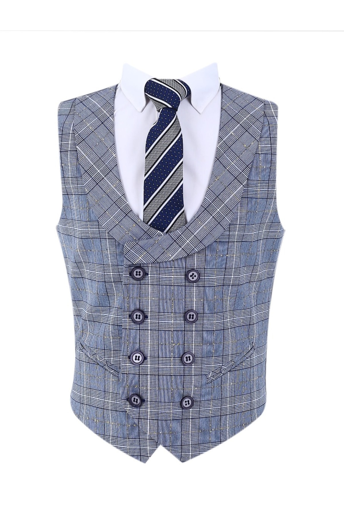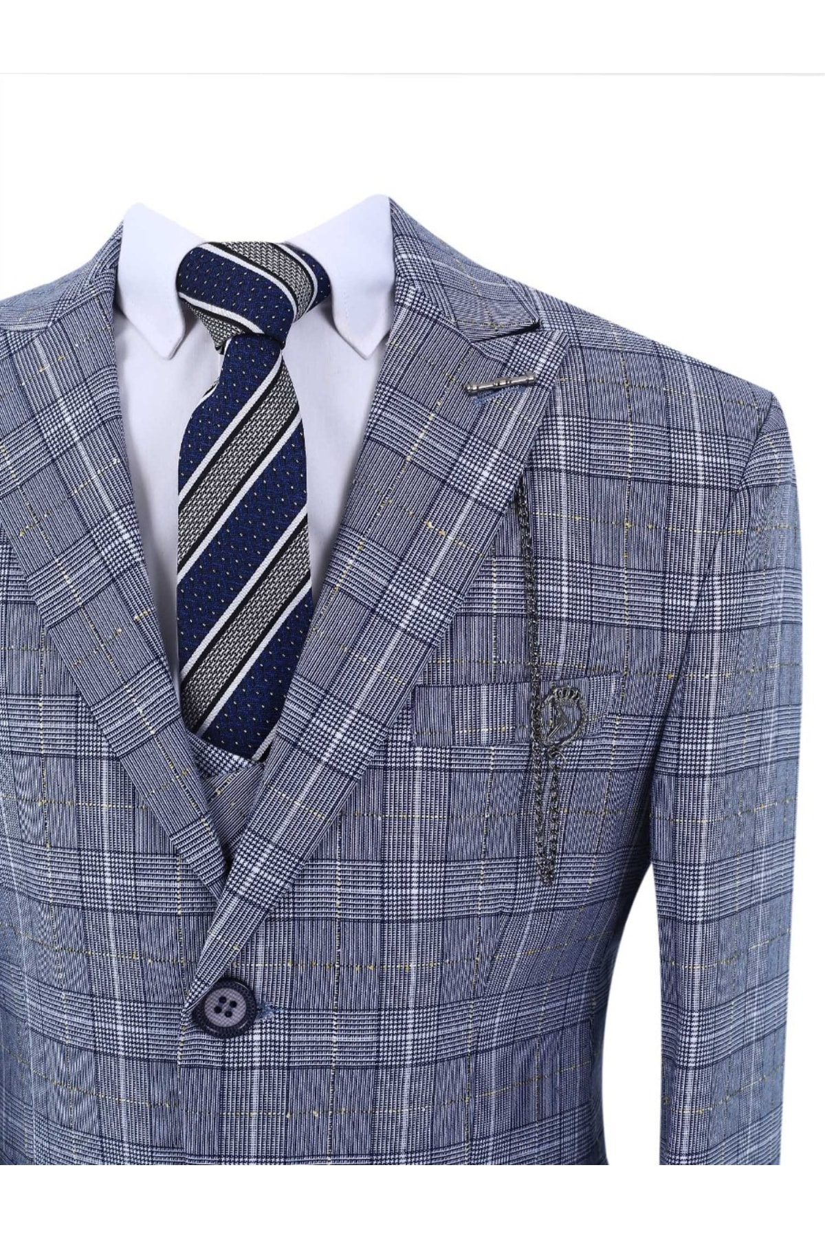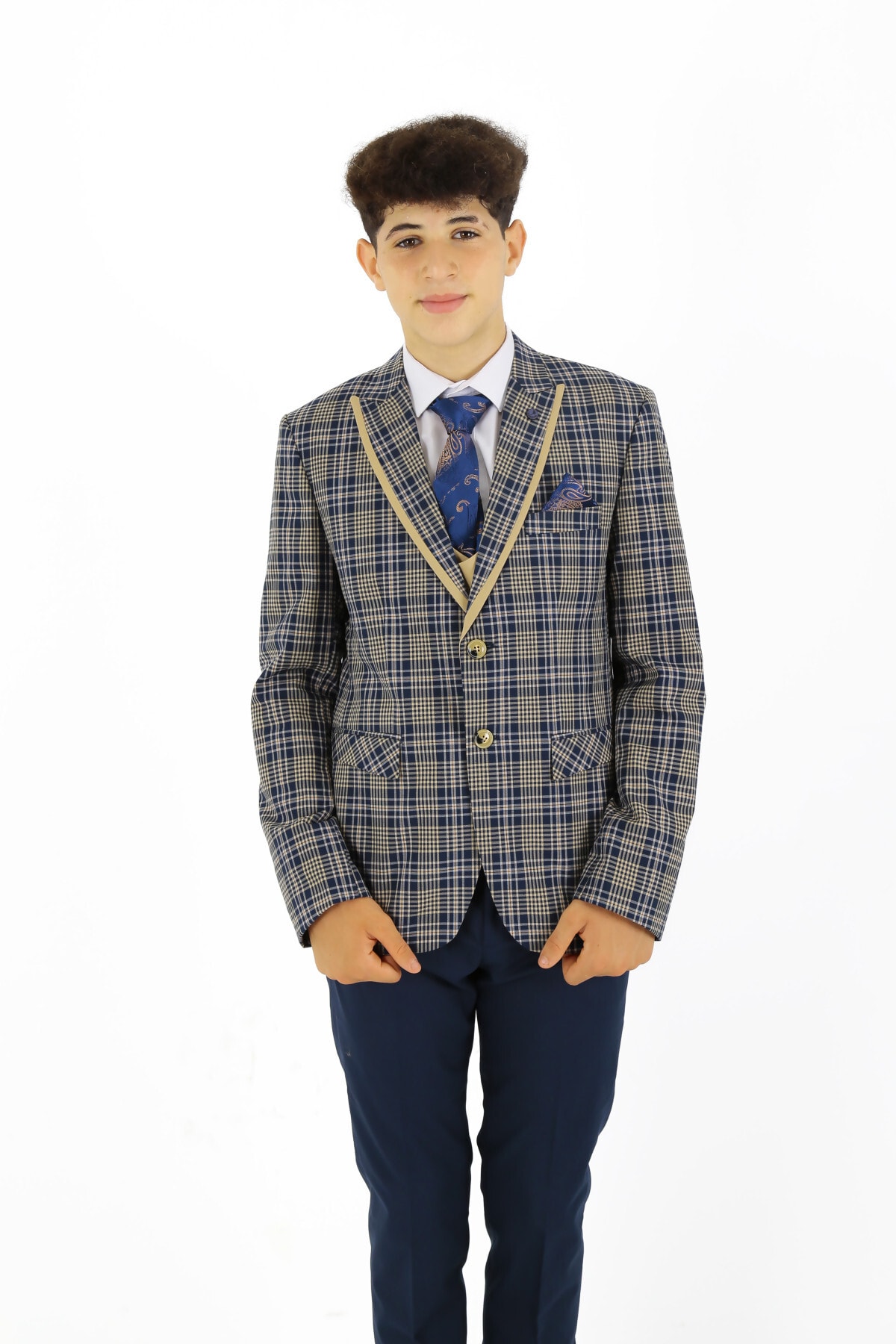 خرید اینترنتی کت و شلوار سه تکه چهارخانه آبی پسرانه برند SIRRI اورجینال از SIRRI نمایندگی ترکیه