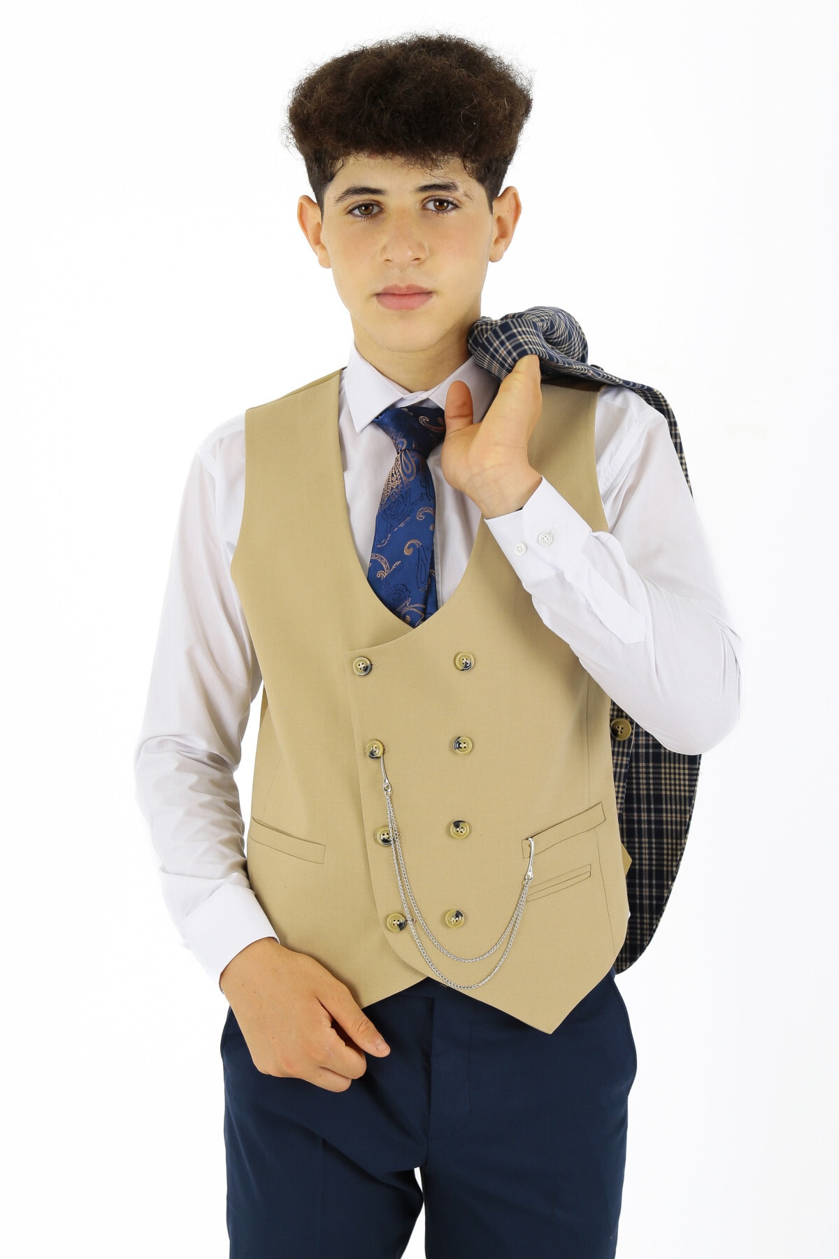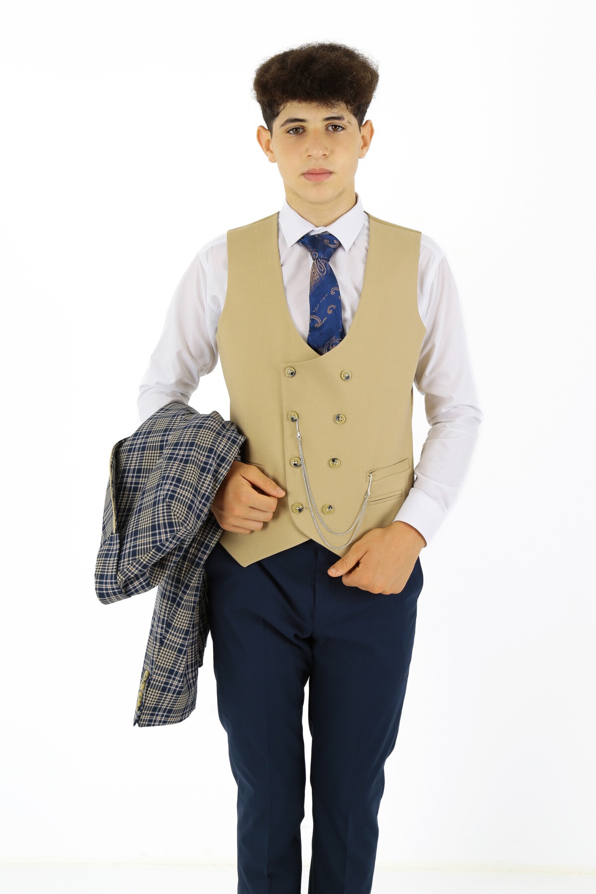 – این کت و شلوار چهارخانه پسرانه با طرح دابی خود، ظرافت و استایل را با هم ترکیب میکند و ظاهری چشمگیر برای مناسبتهای خاص ارائه میدهد.
