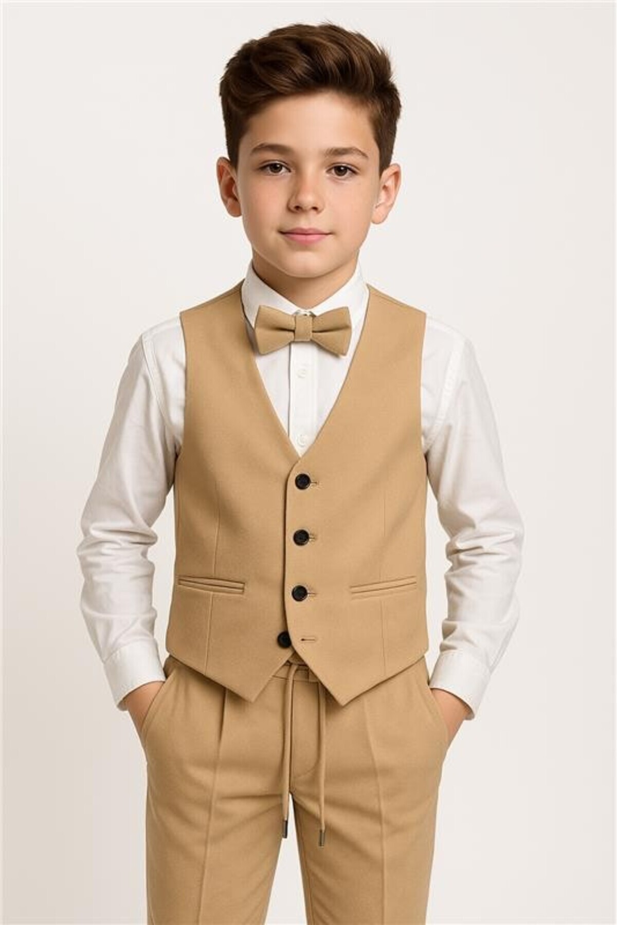 ست کت و شلوار پسرانه فاق نرمال آستین بلند راسته | SIRRI erkek-cocuk-yelek-takimi-5355