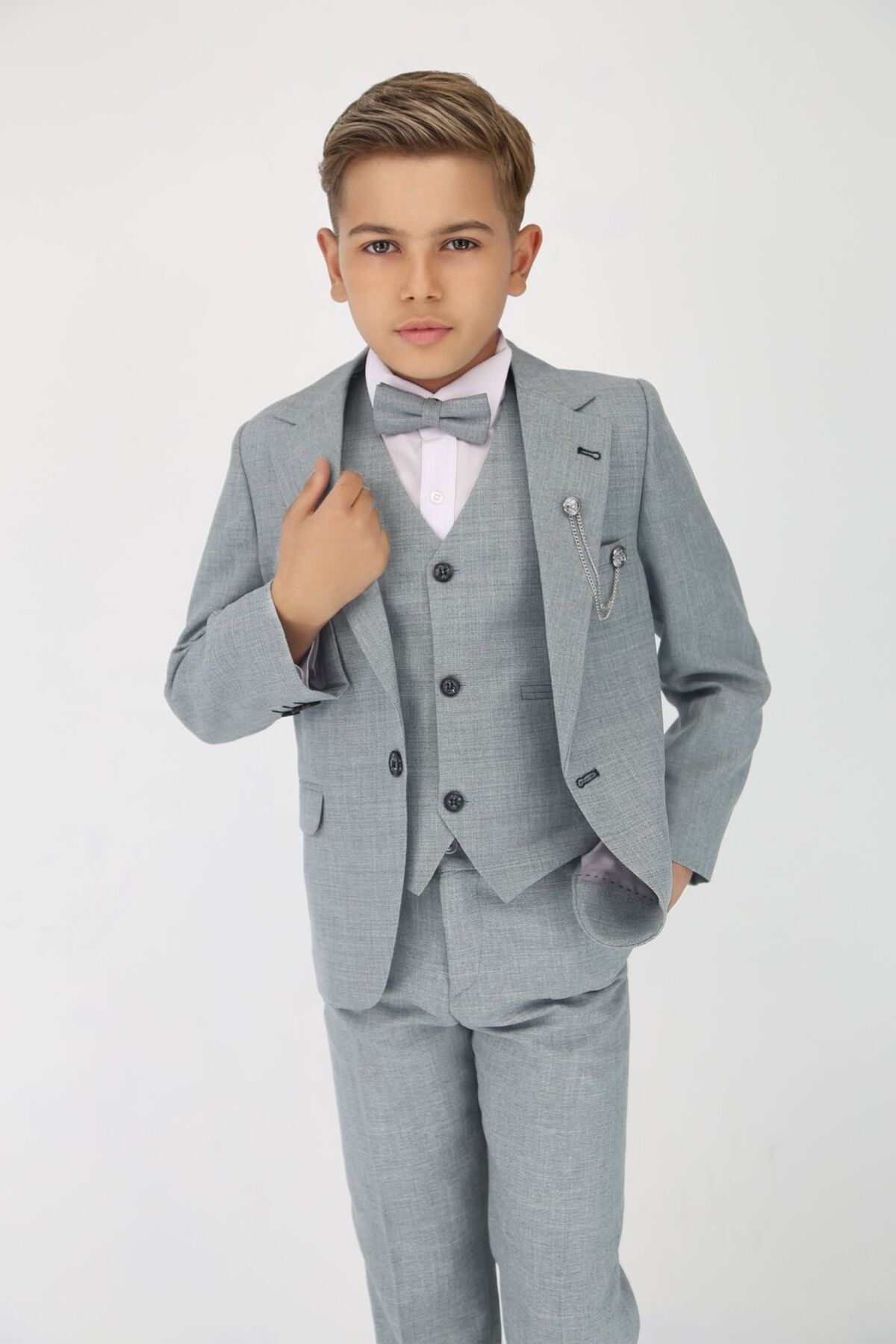 خرید اینترنتی کت و شلوار 5 تکه پسرانه – خاکستری روشن، خاکستری تیره، بژ (7-10 سال) برند SIRRI اورجینال از SIRRI نمایندگی ترکیه