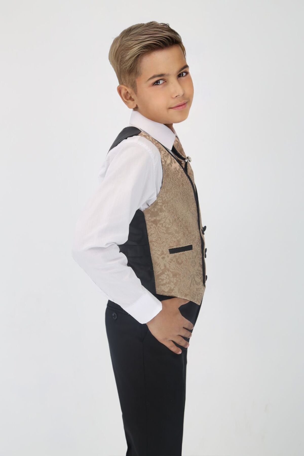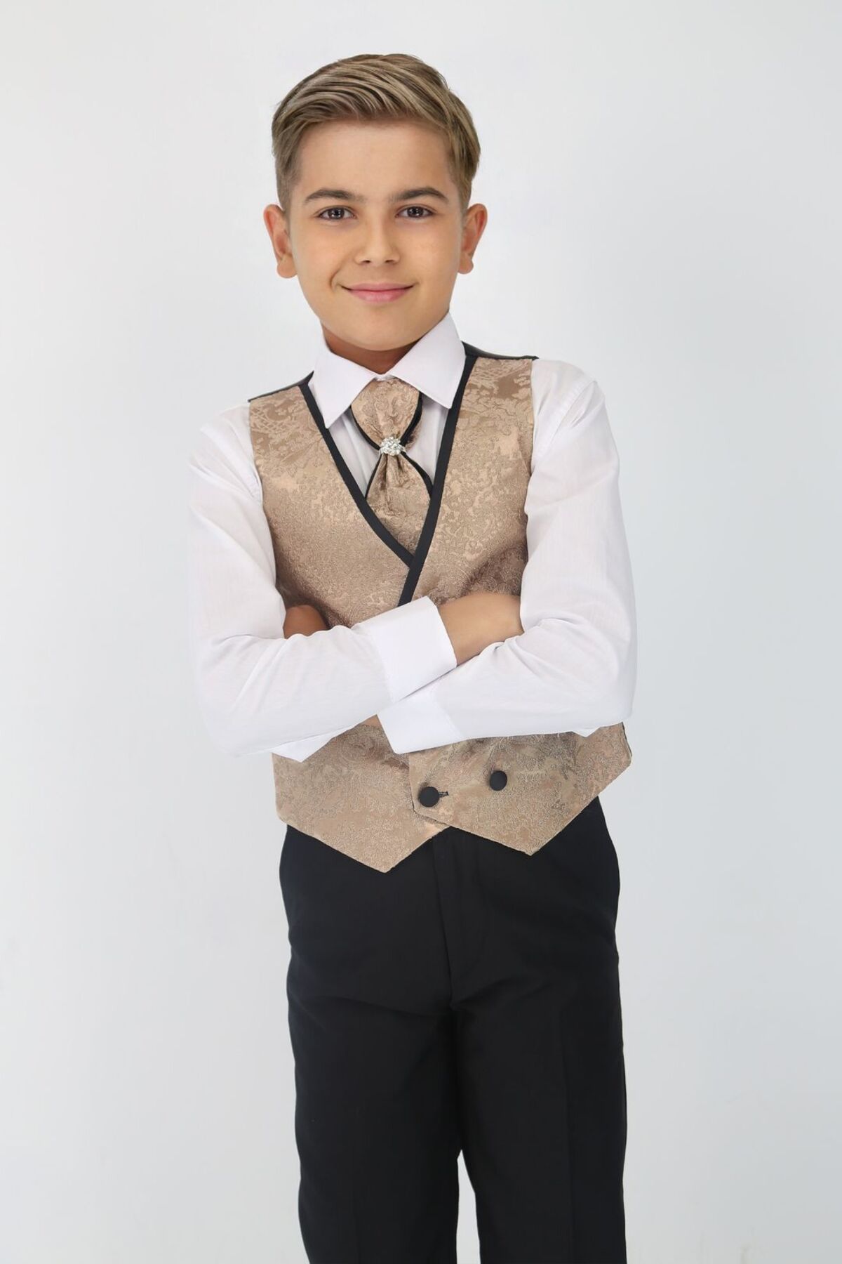 خرید اینترنتی کت و شلوار دامادی پسرانه: ژاکت، شلوار و جلیقه قهوهای یقه ماندارین برند SIRRI اورجینال از SIRRI نمایندگی و فروشگاه معتبر ترکیه