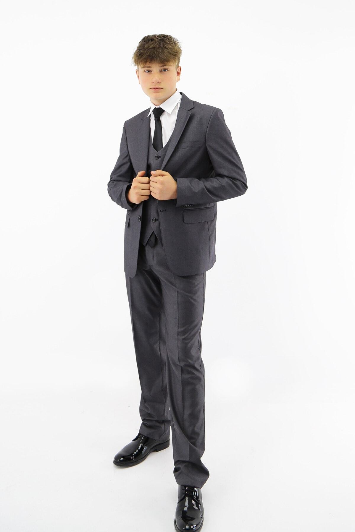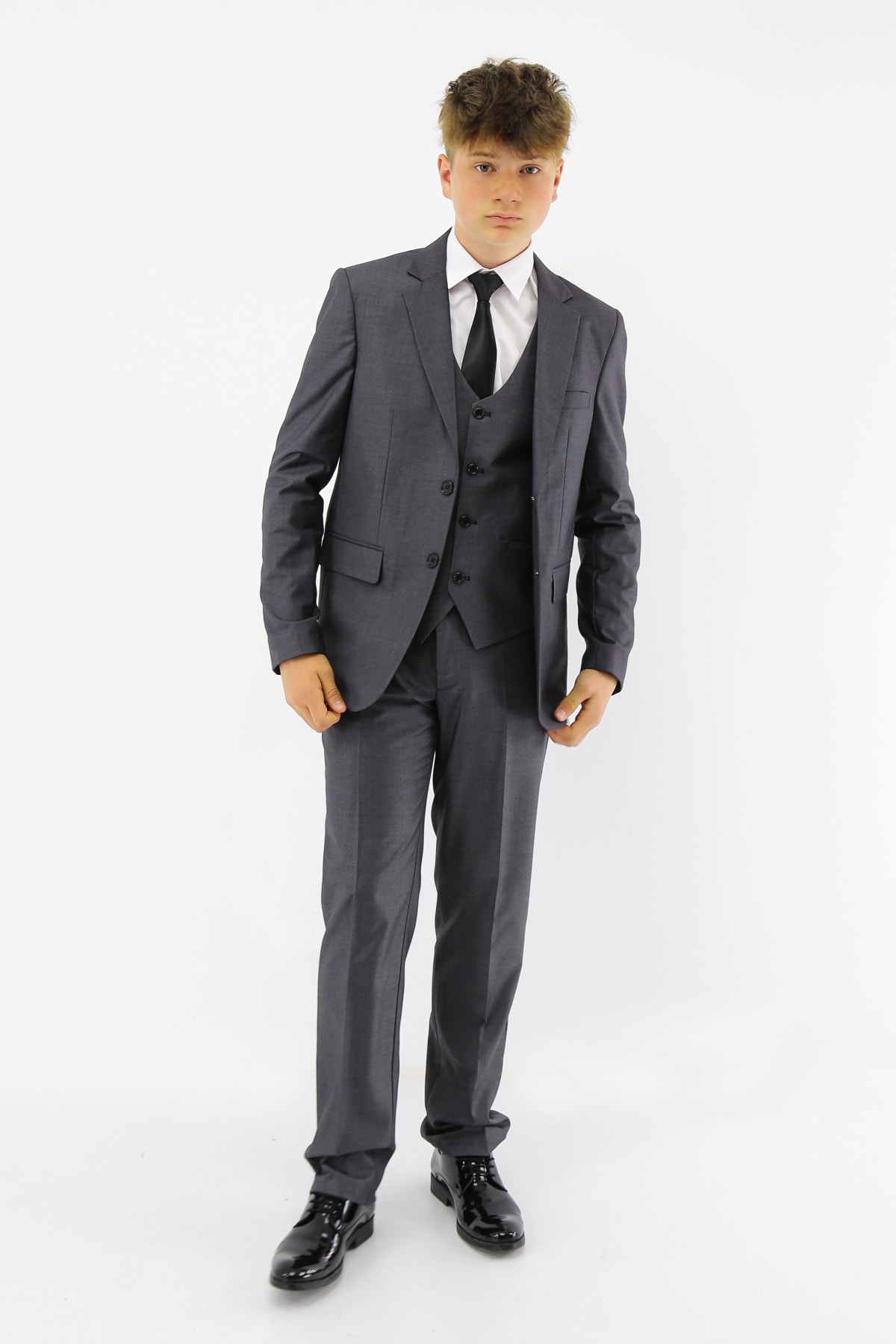 این کت و شلوار خاکستری که مخصوص کودکان طراحی شده است، ظاهری شیک و کلاسیک ارائه میدهد.