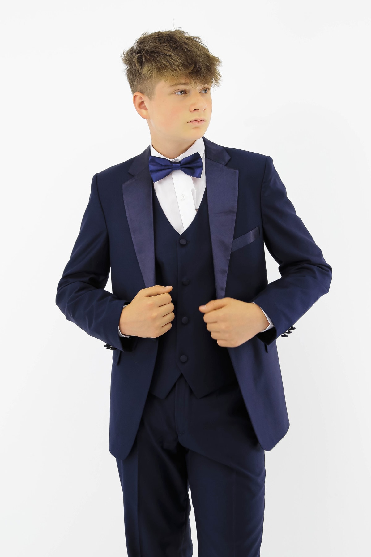 کت و شلوار پسرانه سرمه‌ای و سفید مناسب مراسم خاص - گزینه‌ای شیک برای عروسی و ختنه سورمه ای