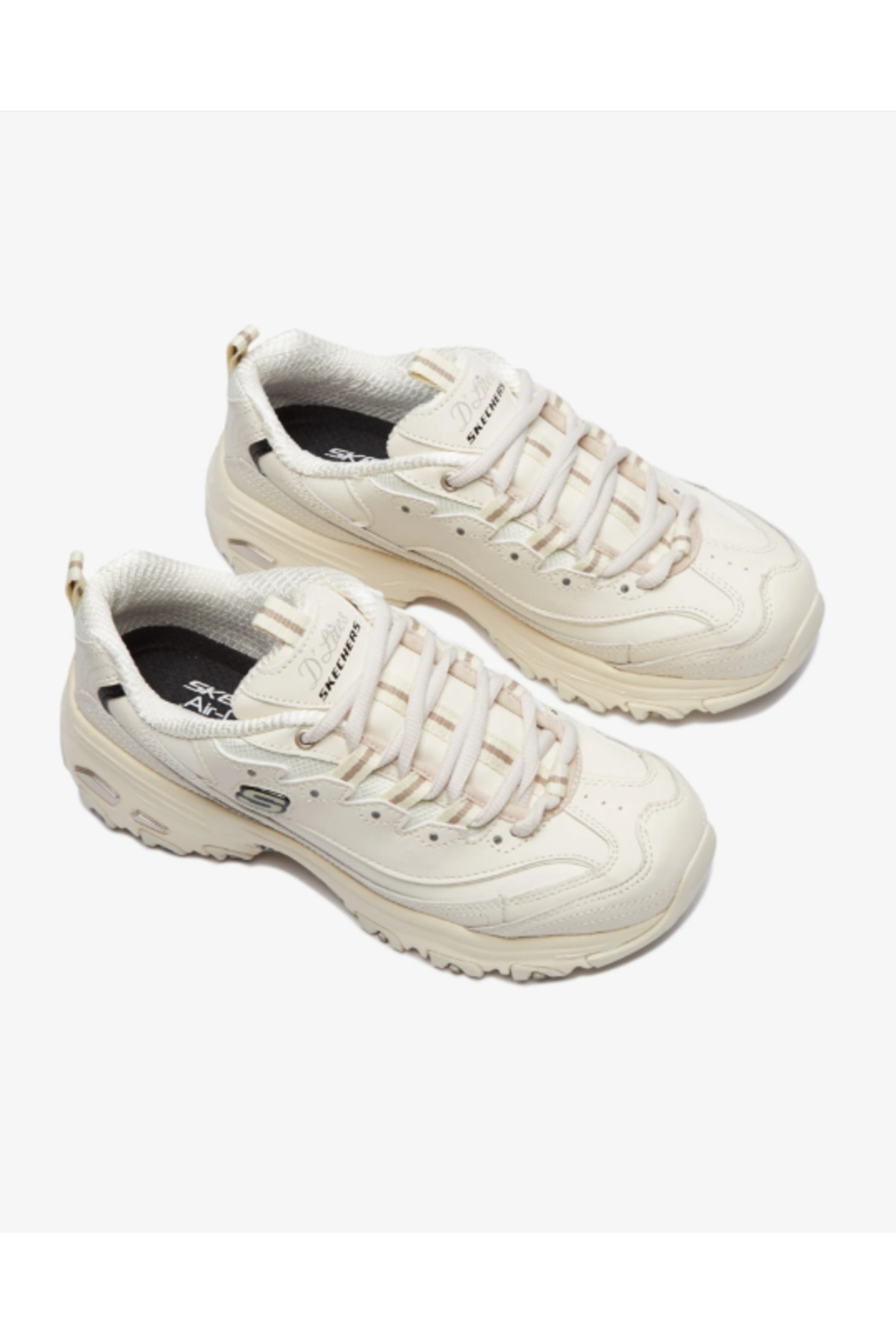 کفش SKECHERS D’Lites – Fresh Start با خطوط سفید کلاسیک خود، به شما این امکان را می‌دهد که روز خود را با احساس تازگی شروع کنید. ظاهر شیک خود را با راحتی بالا ترکیب کنید. رویه چرمی صاف به بهبود استایل شما کمک می‌کند، در حالی که طراحی خاص کفی استفاده شده در قسمت داخلی و زیره، راحتی کفش را حتی پس از ساعت‌ها تضمین می‌کند. طراحی سفید شیک با یک نوار لبه فلزی و لوگوی S تکمیل می‌شود. کفی کفش از بالشتک‌های مموری فوم خنک‌شونده با هوا استفاده می‌کند تا به طور کامل از پای شما پشتیبانی کند و راحتی تمام روز را فراهم کند. این امر تضمین می‌کند که حتی در طول پیاده‌روی‌های طولانی نیز از پاهای شما پشتیبانی می‌شود. طراحی زیره میانی، ضربه به پاهای شما را به حداقل می‌رساند. زیره بیرونی که با استفاده از مواد لاستیکی انعطاف‌پذیر طراحی شده است، جذب ضربه کفش را به حداکثر می‌رساند. فرورفتگی‌های روی زیره، چسبندگی بهتری به زمین را فراهم می‌کند و تجربه پیاده‌روی بی‌نقصی را ارائه می‌دهد. پاشنه ۳.۱۷ سانتی‌متری تعبیه شده، امکان گام‌های پایدارتر را فراهم می‌کند و به شما کمک می‌کند قدبلندتر به نظر برسید.
