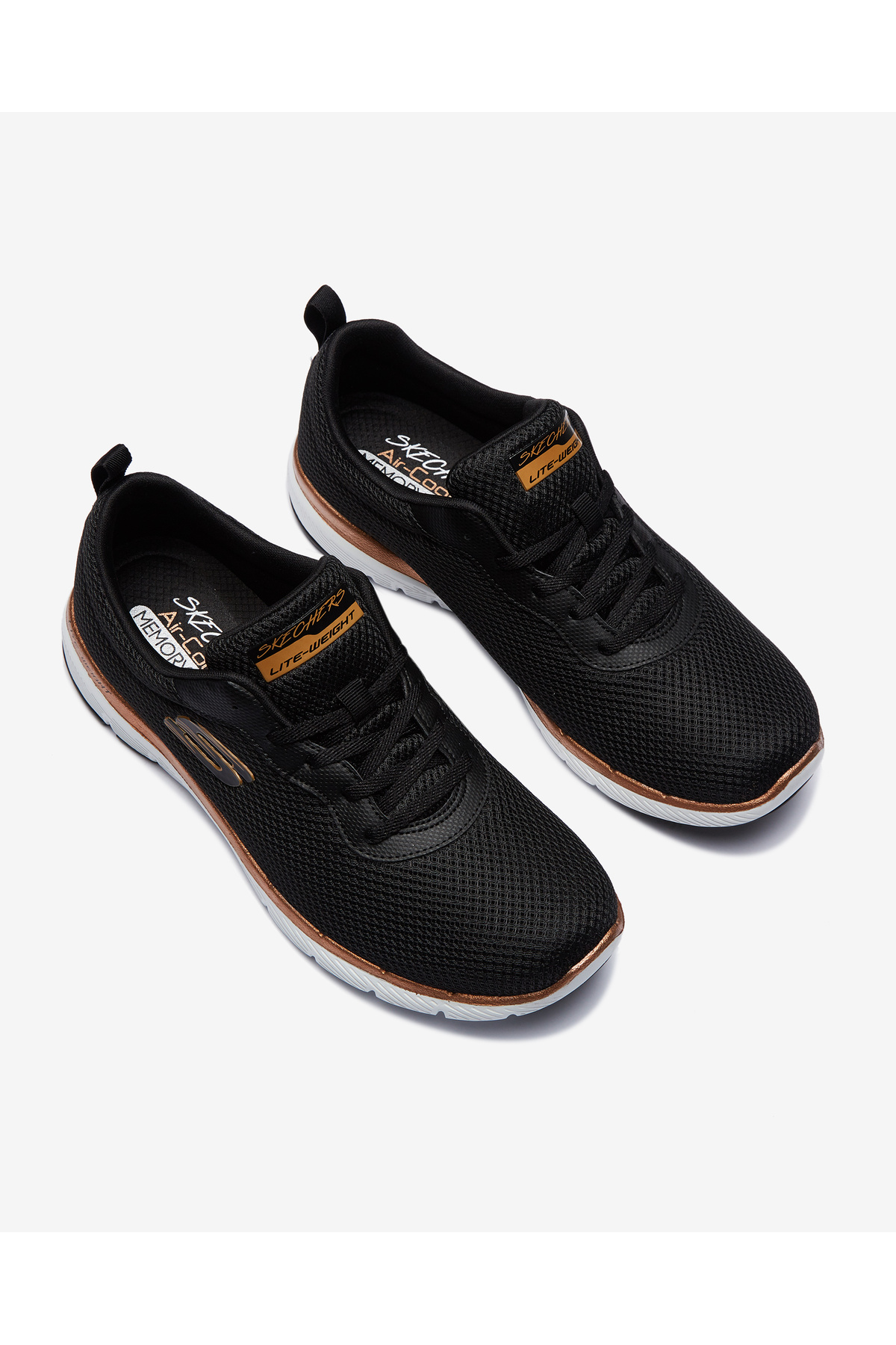 خرید اینترنتی کفش کتانی زنانه FLEX APPEAL 3.0 مشکی/صورتی طلایی S13070 BKRG برند اسکچرز Skechers اورجینال از SNİKSTRA نمایندگی ترکیه