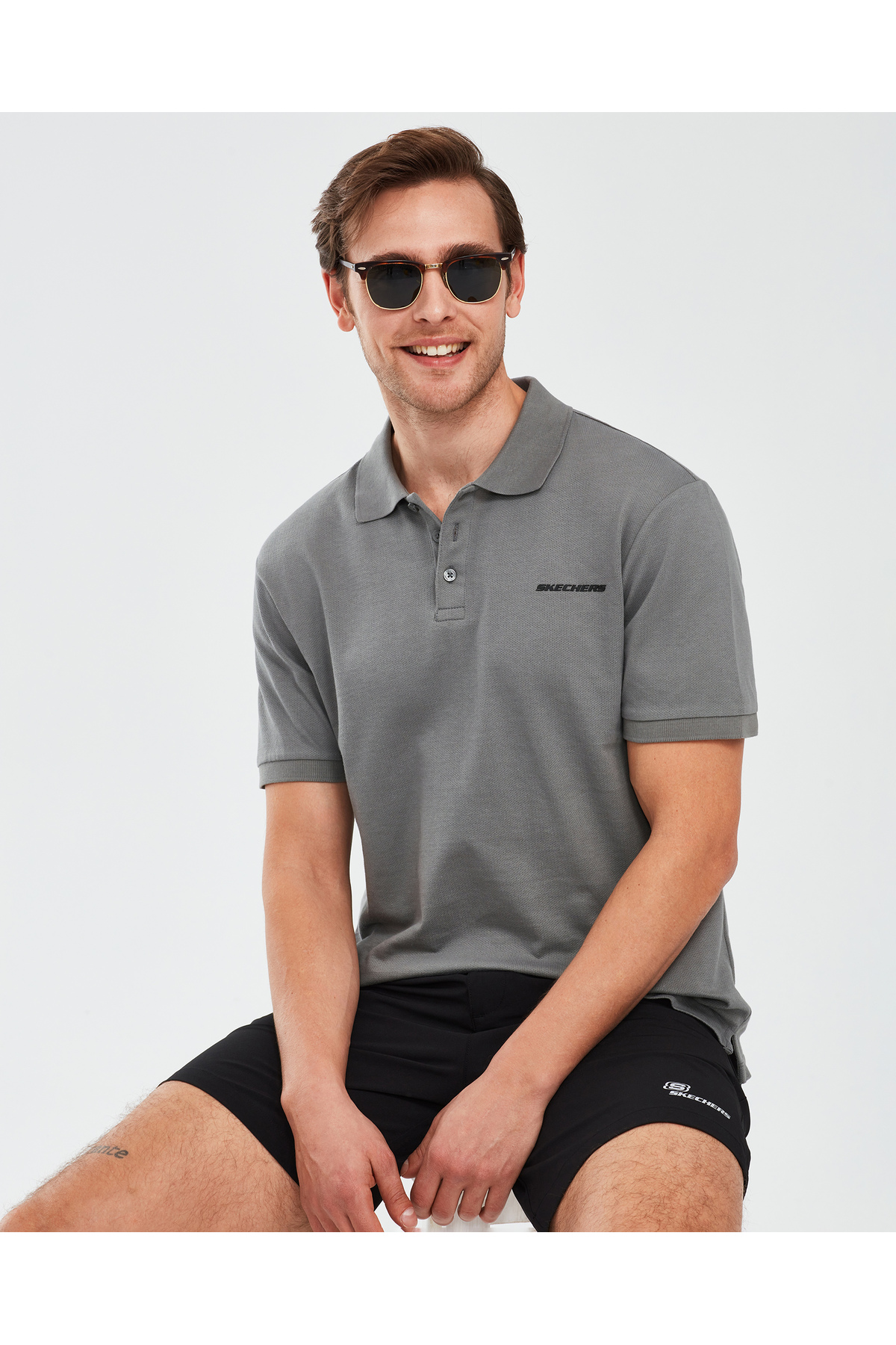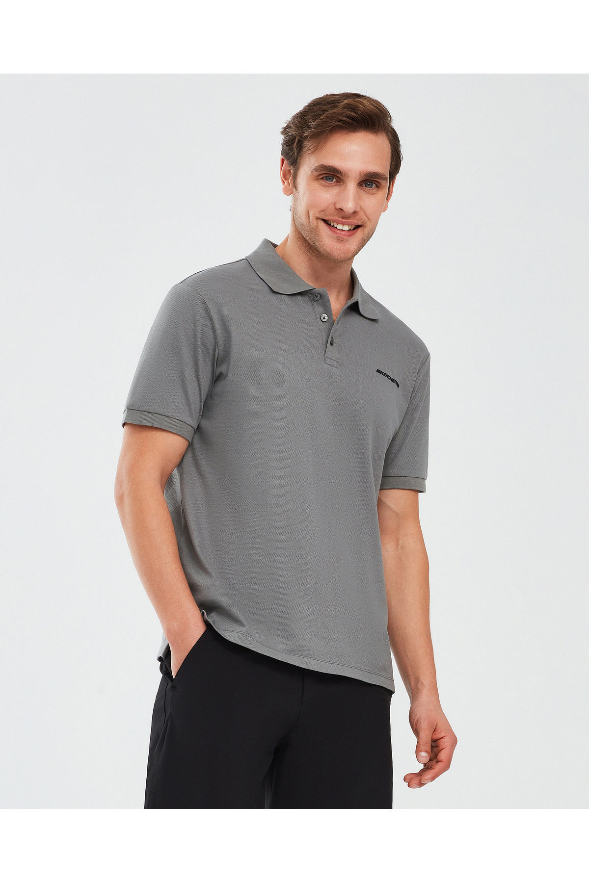 خرید اینترنتی تیشرت یقه گرد مردانه آستین کوتاه M مدل پولو، یقه گرد خاکستری S211800-003 برند اسکچرز Skechers اورجینال از SKECHERS نمایندگی ترکیه