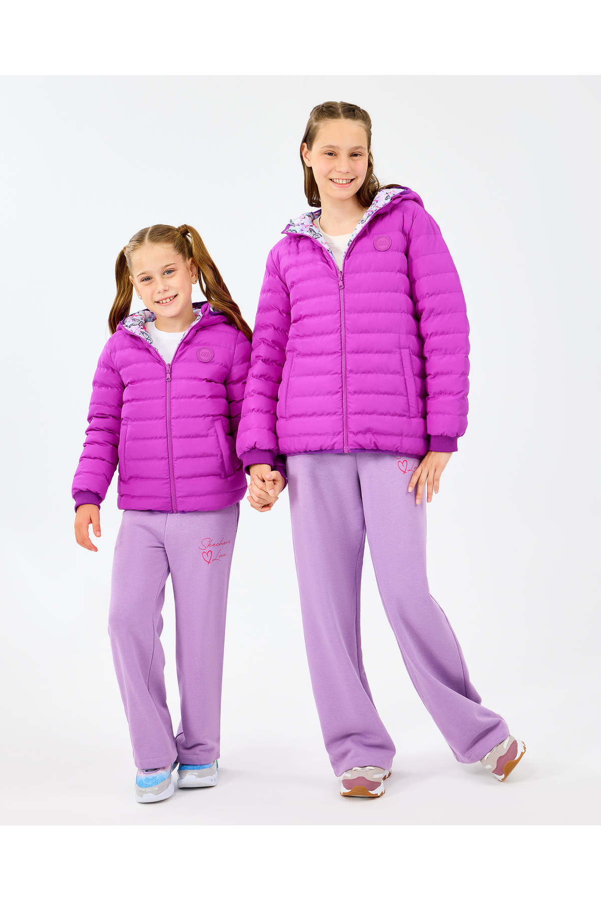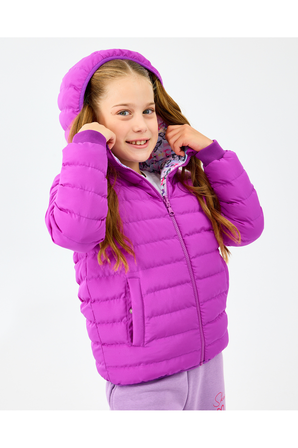 کاپشن پفی دو طرفه G برای دختران بزرگ، کاپشن دو طرفه بنفش SK2520079-4069