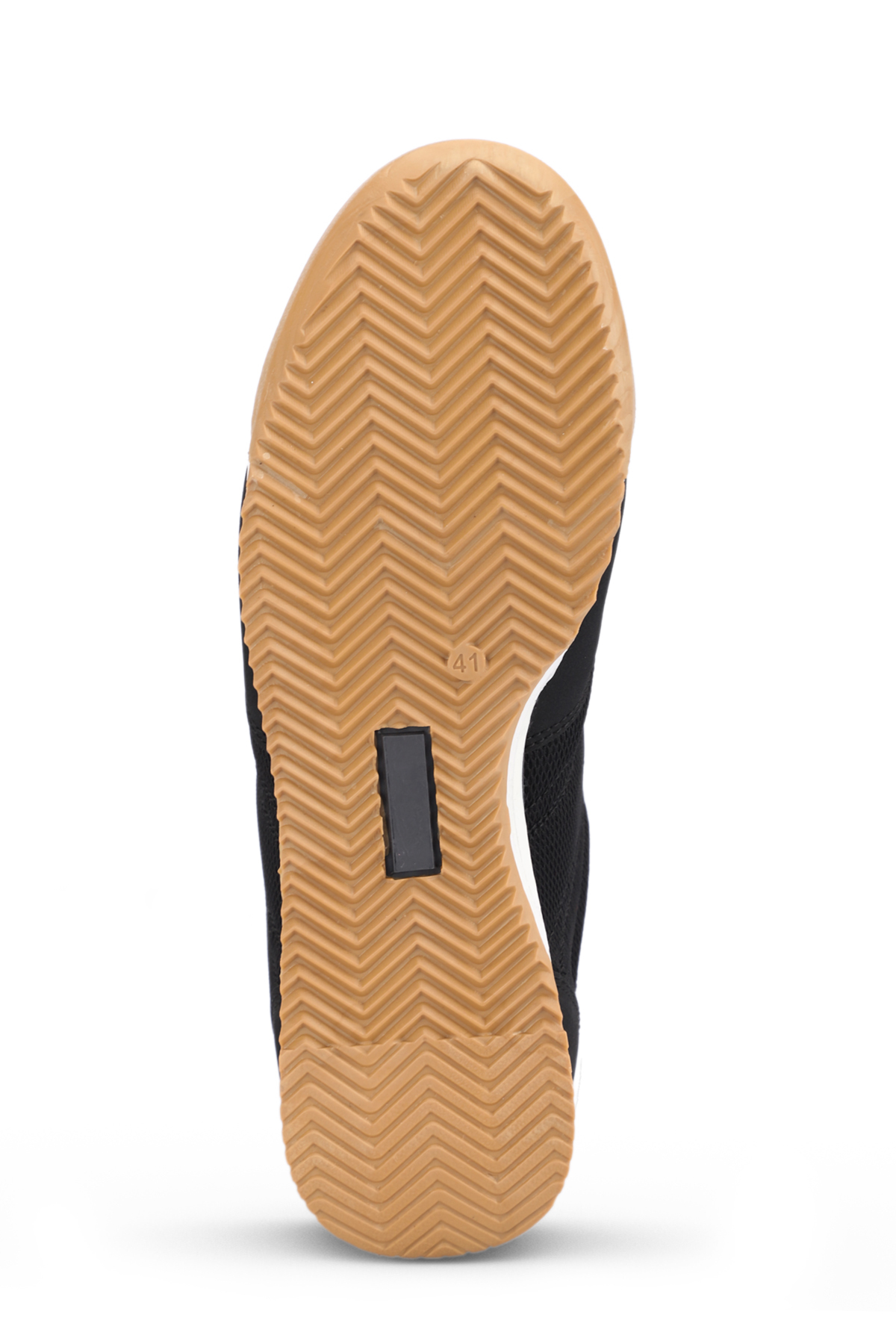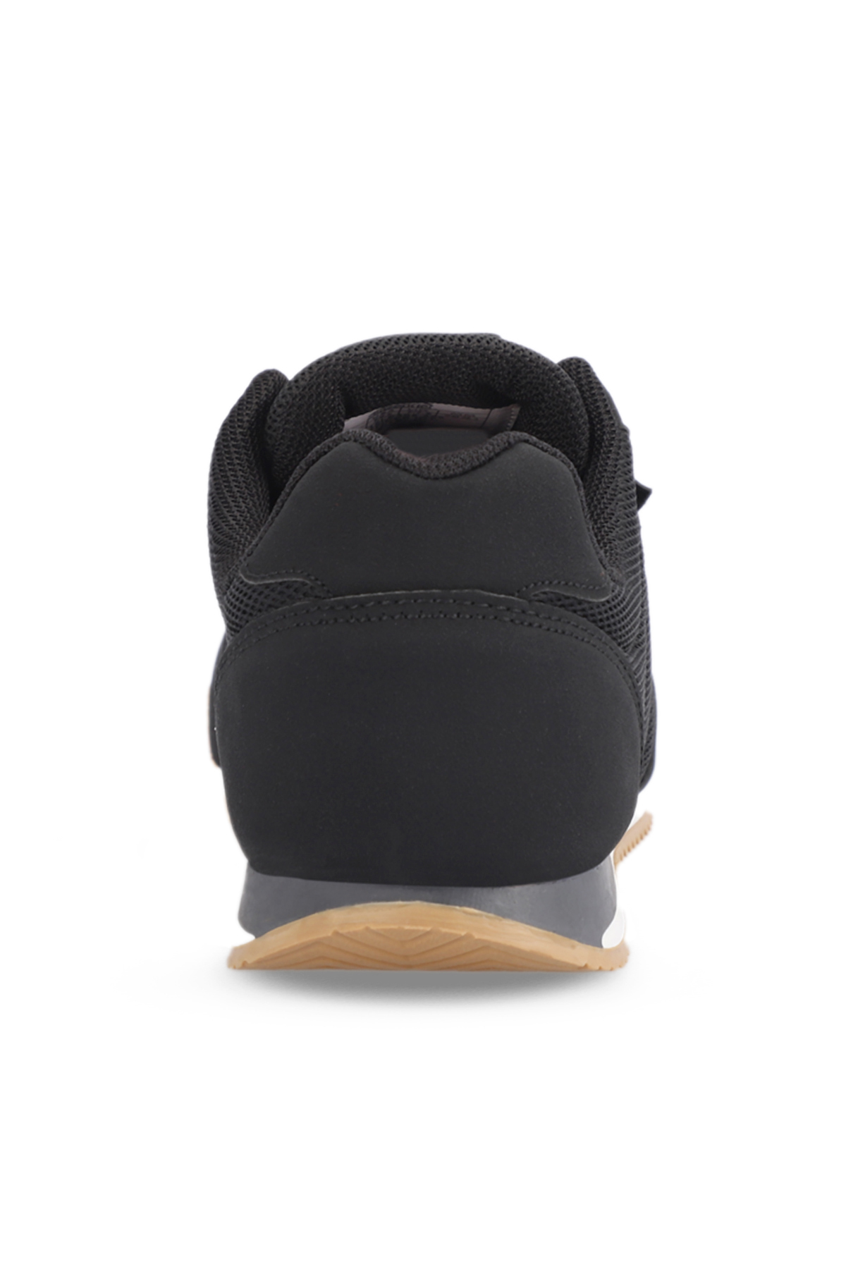 اسلازنگر OFFICER I یک کفش کتانی با طراحی منحصر به فرد است که رویه آن پارچهای و عمدتاً با رنگهای مشکی/مشکی است.