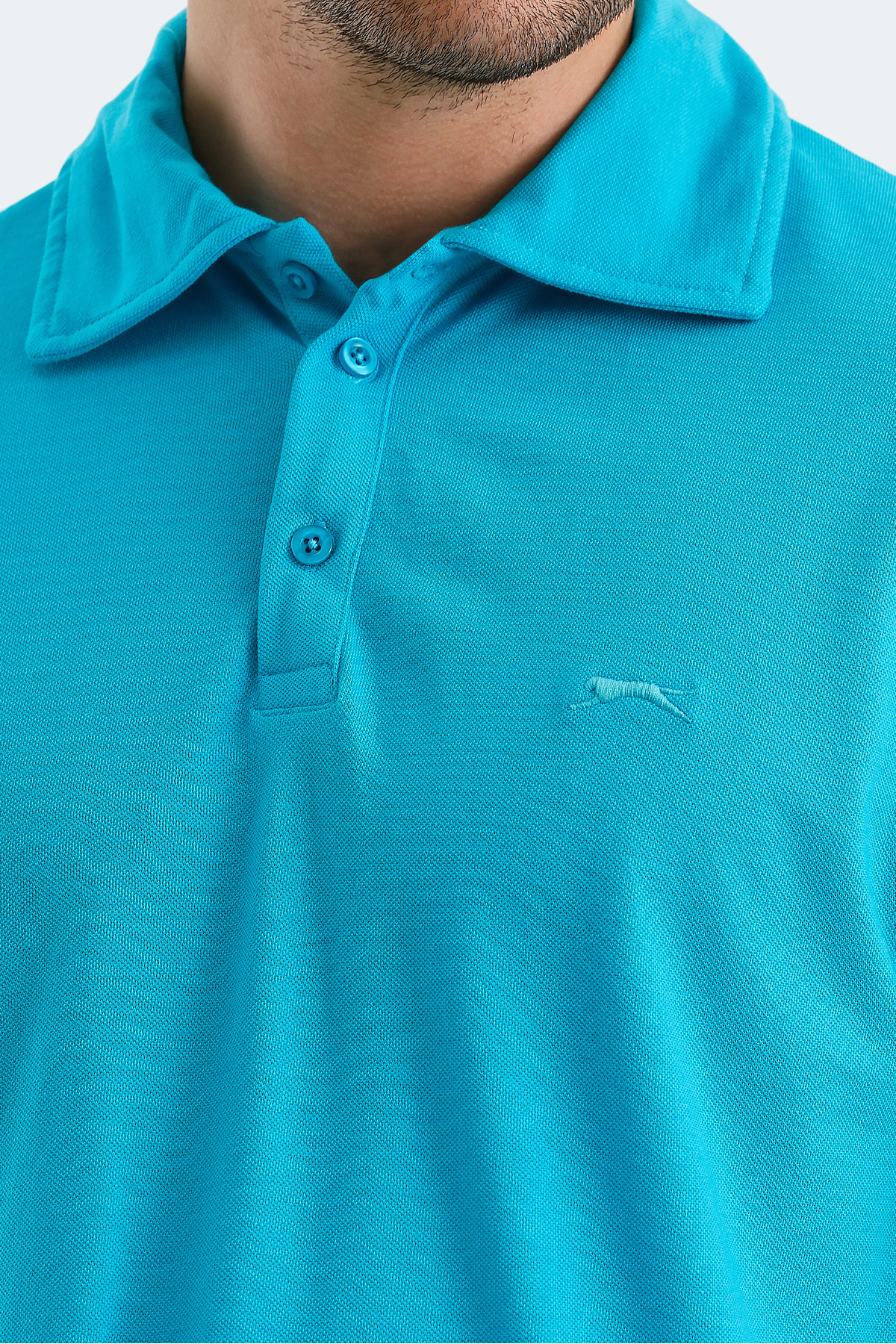 تیشرت مردانه Slazenger — فیروزهای، یک تیشرت یقهدار، دارای بافت پارچهای قابل تنفس است که کاربرد تیشرت را هم در ورزش و هم در زندگی روزمره افزایش میدهد.