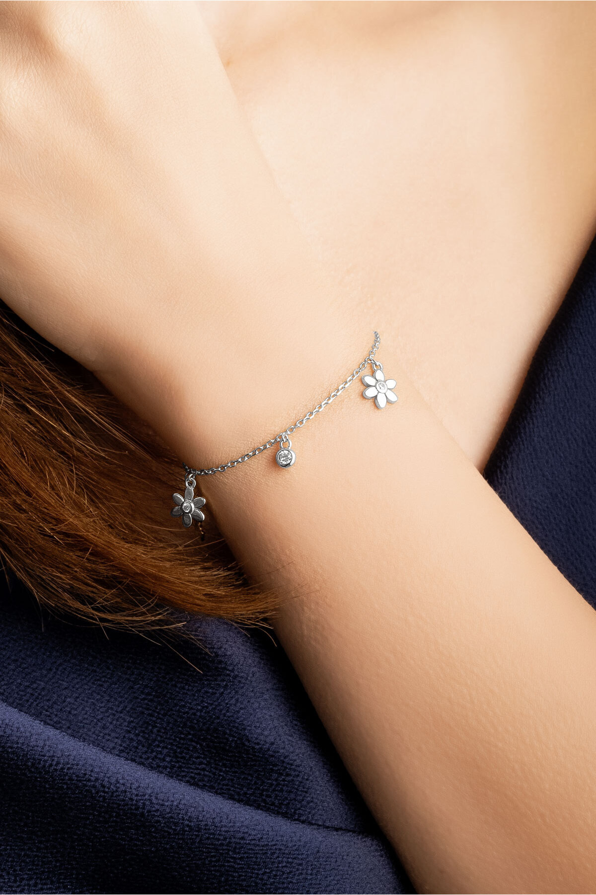 دستبند نقره 20 سانتی متری با روکش طلای سفید 18 عیار گل های شانس سو شیک زنانه | So Chic 5060730199