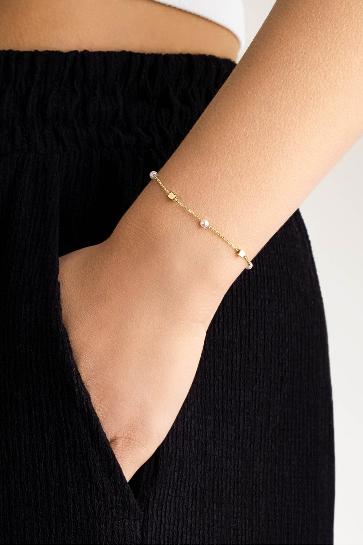 دستبند مینیمال نقره 21 سانتی متری با روکش طلای زرد مروارید 18 عیار سو شیک زنانه | So Chic 5146916244
