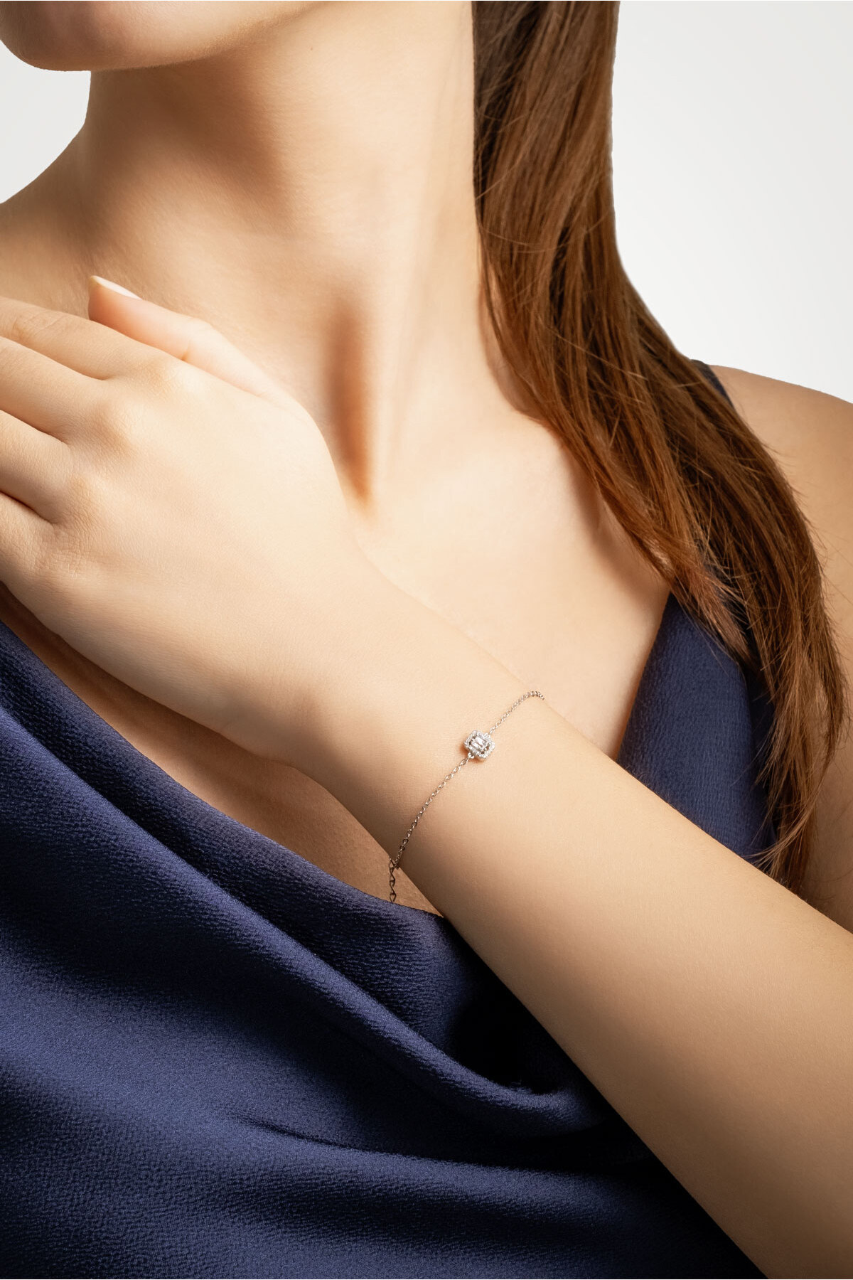 Tag: دستبند باگت نقره 19 سانتی متری با روکش طلای سفید 18 عیار زنانه