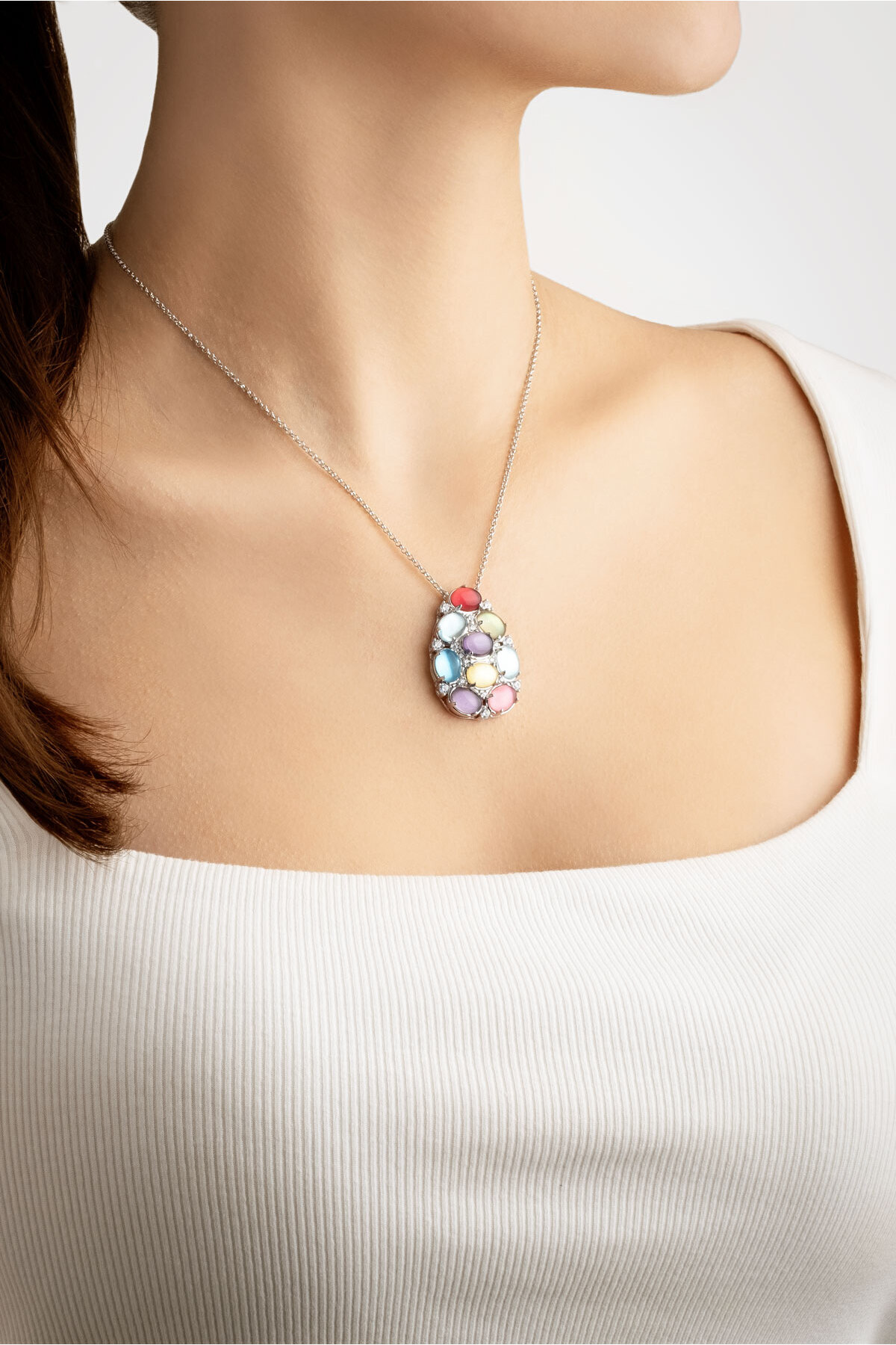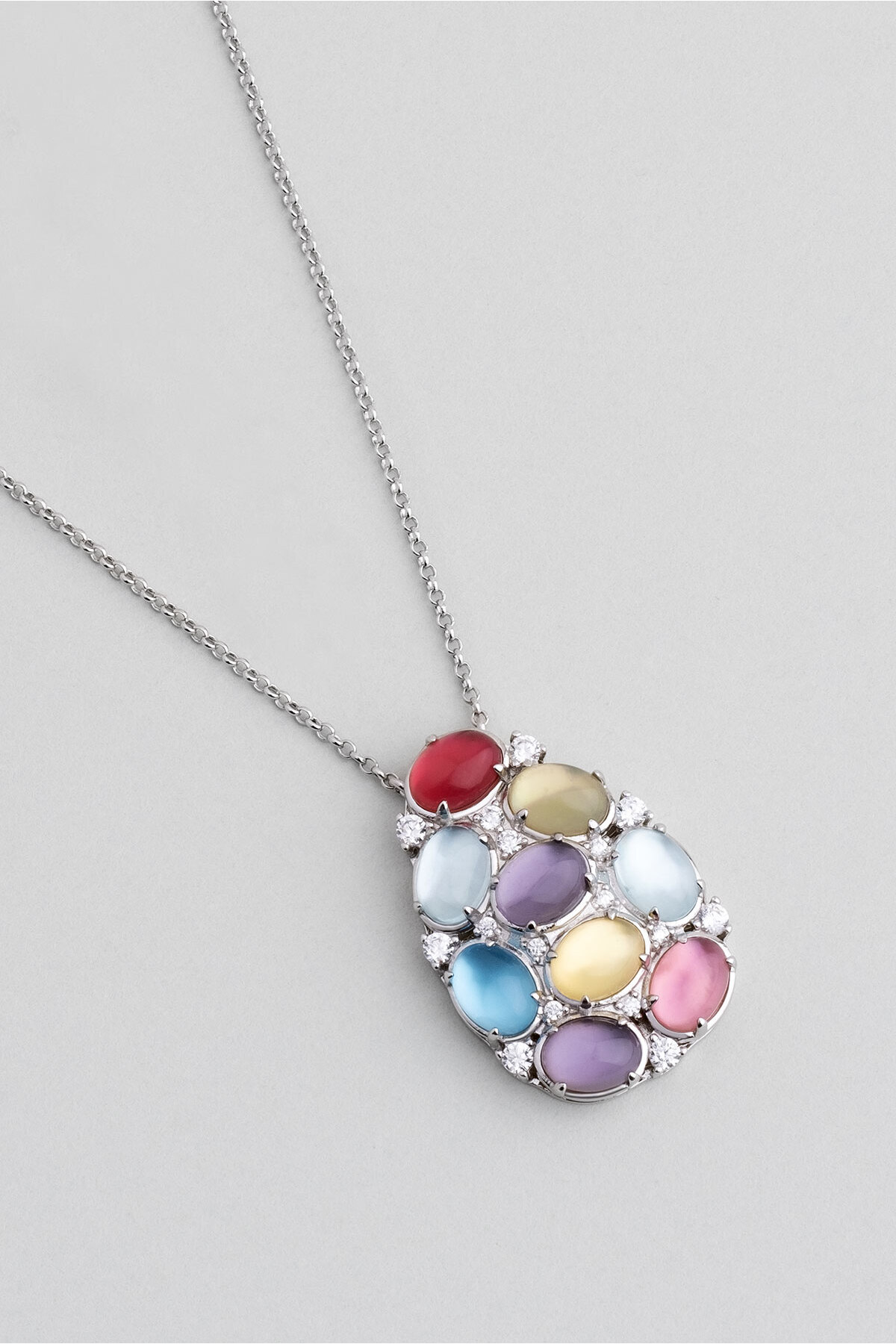گردنبند طرح نقره قابل تنظیم با روکش طلای سفید 18 عیار رنگارنگ سو شیک زنانه | So Chic 7298841399