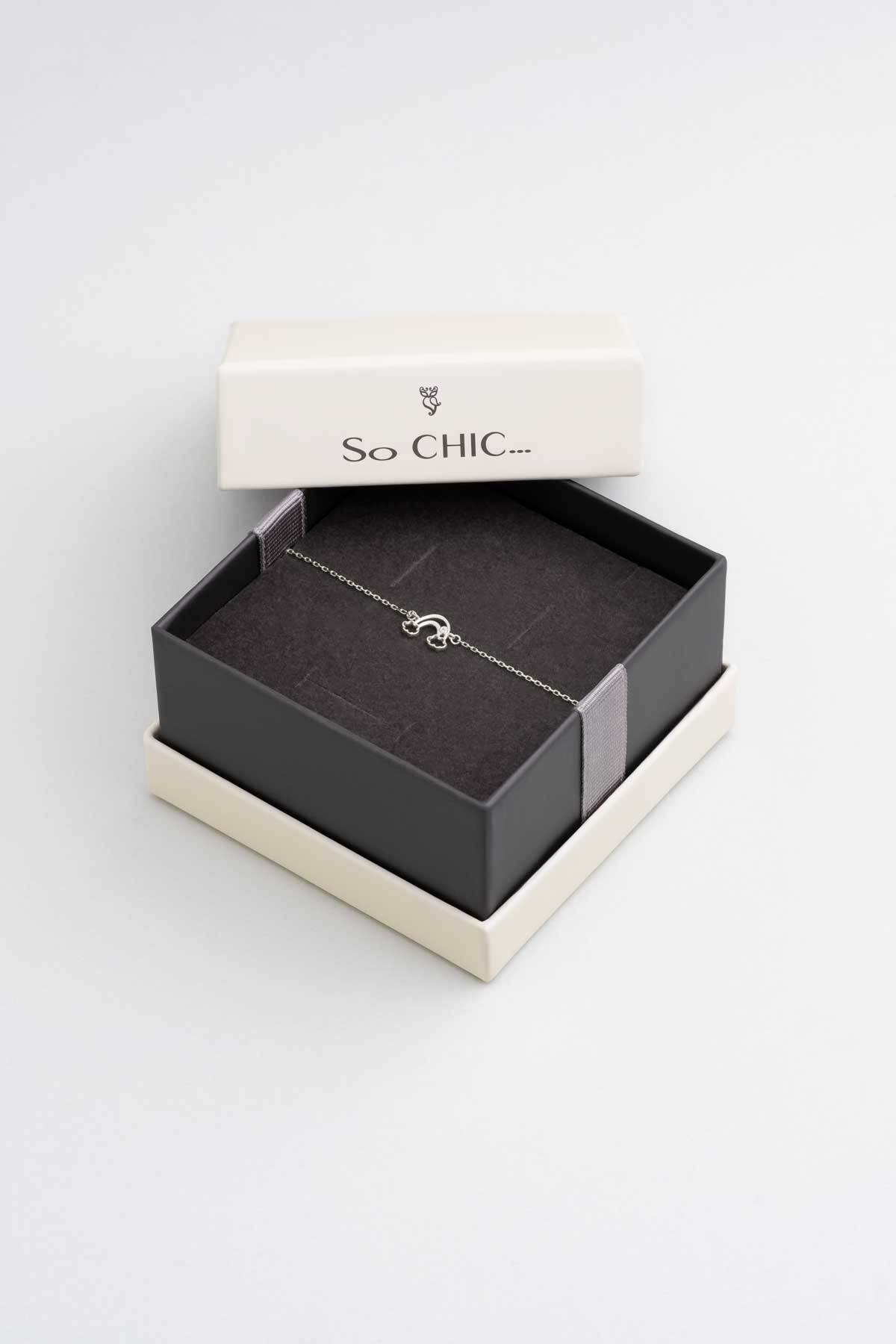 دستبند نقره 20 سانتی متری با روکش طلای سفید 18 عیار رنگین کمان سو شیک زنانه | So Chic 7305050199