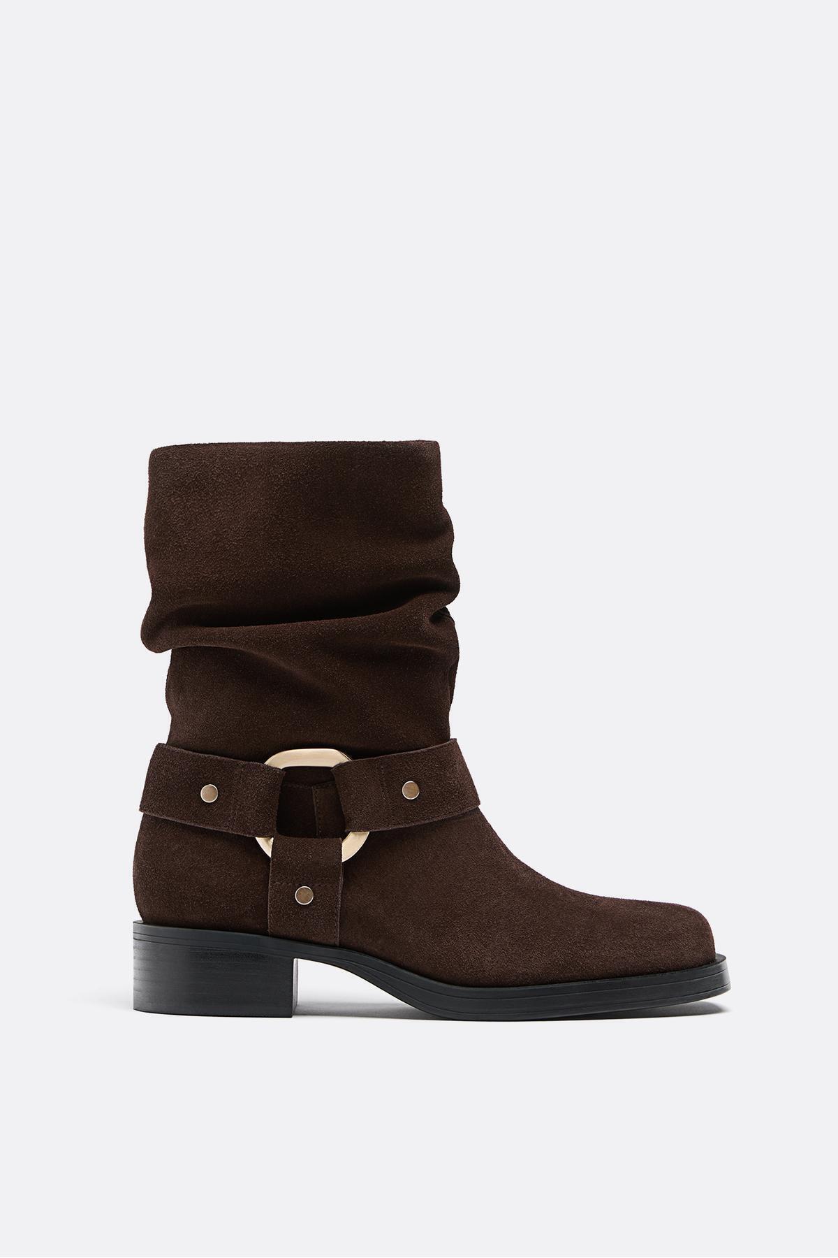 خرید اینترنتی چکمه‌های چرمی تخت سگک‌دار برند استرادیواریوس Stradivarius اورجینال از Stradivarius نمایندگی ترکیه