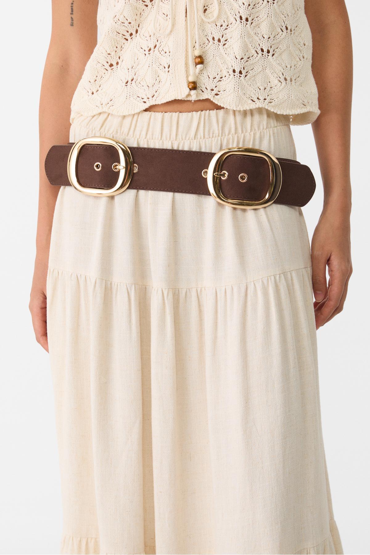 خرید اینترنتی کمربند ضخیم دو سگک برند استرادیواریوس Stradivarius اورجینال از Stradivarius نمایندگی ترکیه