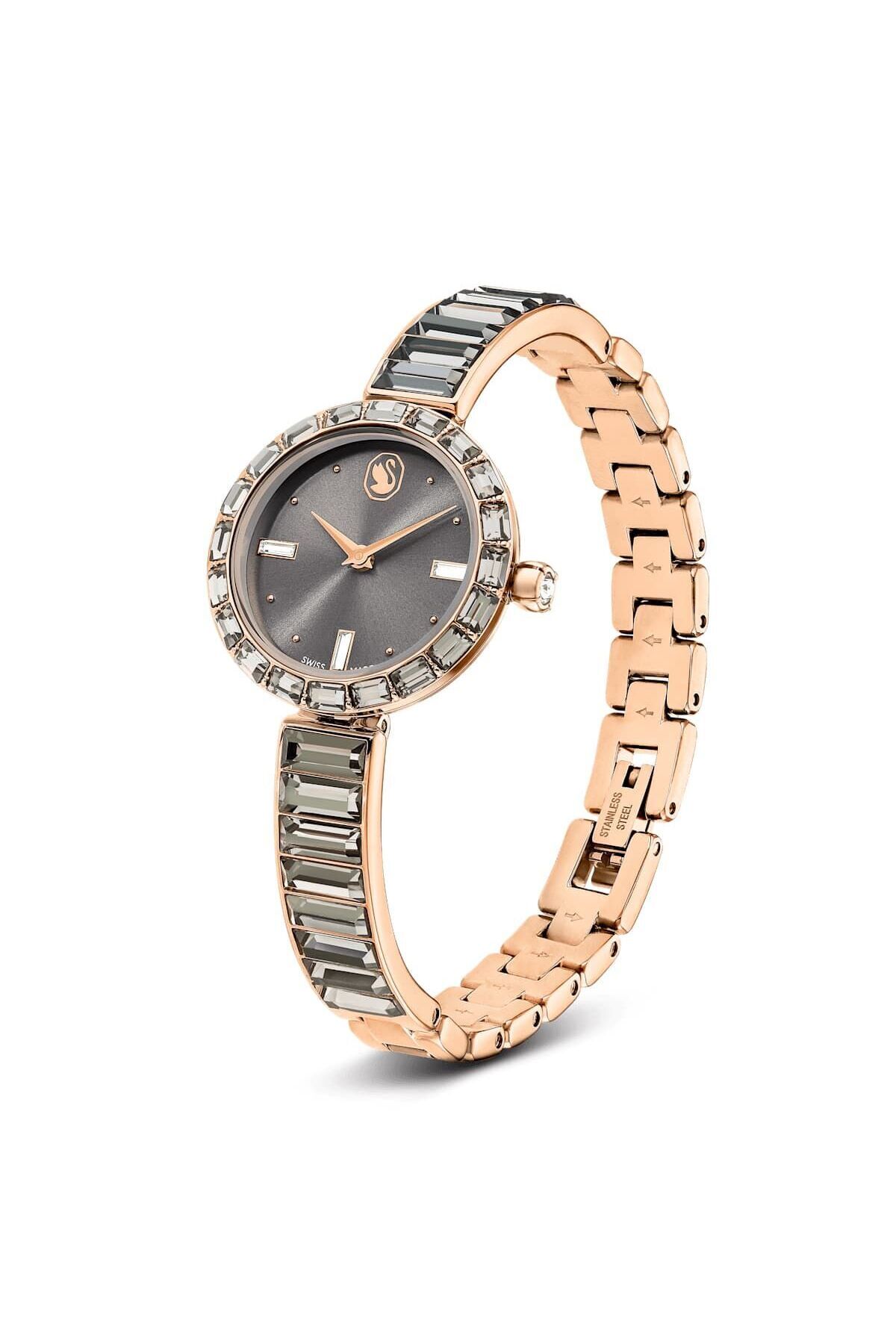 ساعت النگوی ماتریکس، ساخت سوئیس، دستبند کریستالی، خاکستری، سطح رنگ رزگلد زنانه سواروسکی | Swarovski 5679887