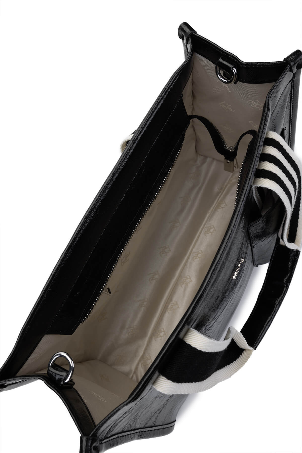 خرید اینترنتی کیف دوشی زنانه چرم وگان مشکی طرح پتنت برند تامر تانجا Tamer Tanca اورجینال از Tamer Tanca نمایندگی ترکیه