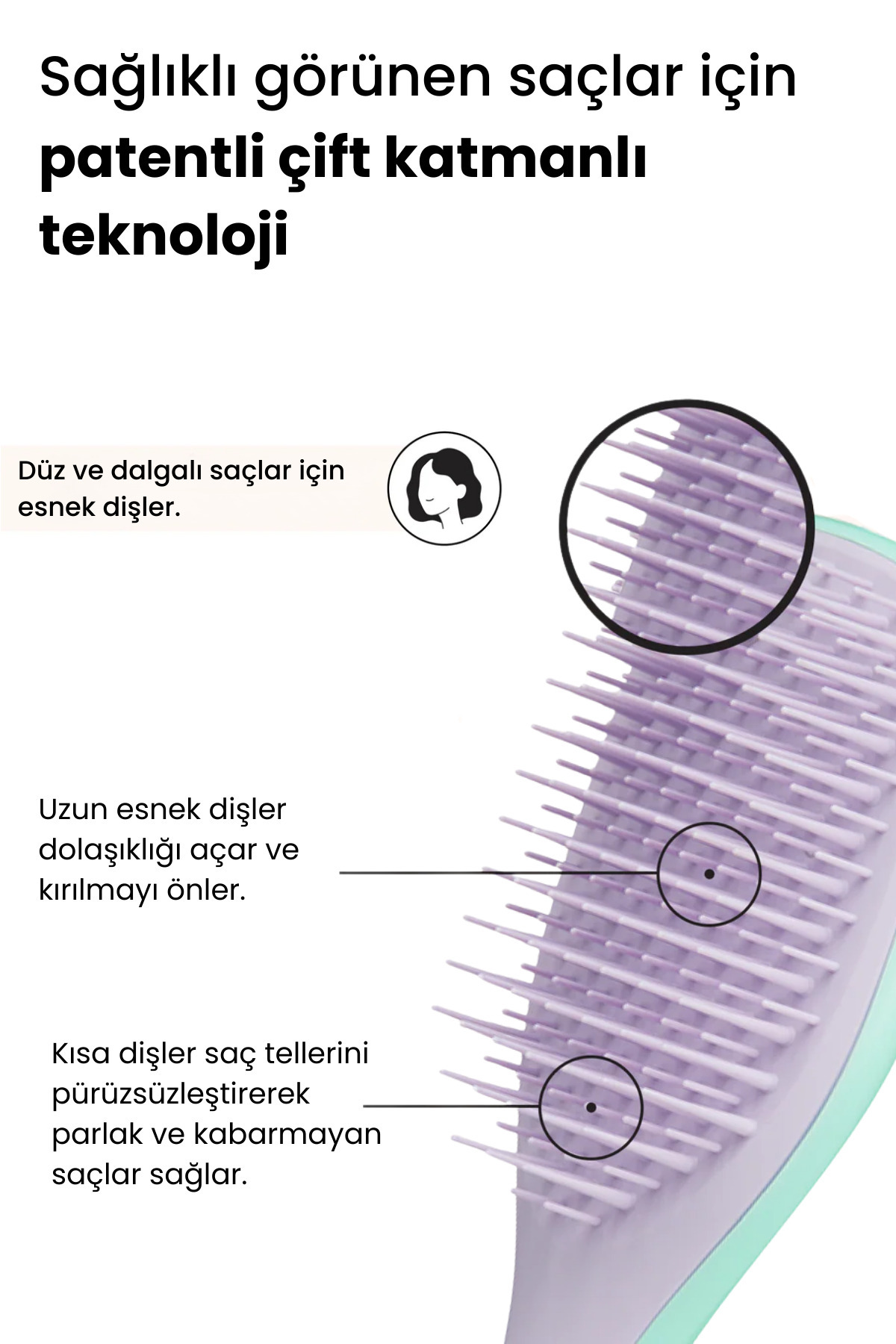 * دندانههای بلند: گرههای مو را بدون درد و کشیدگی باز میکنند.