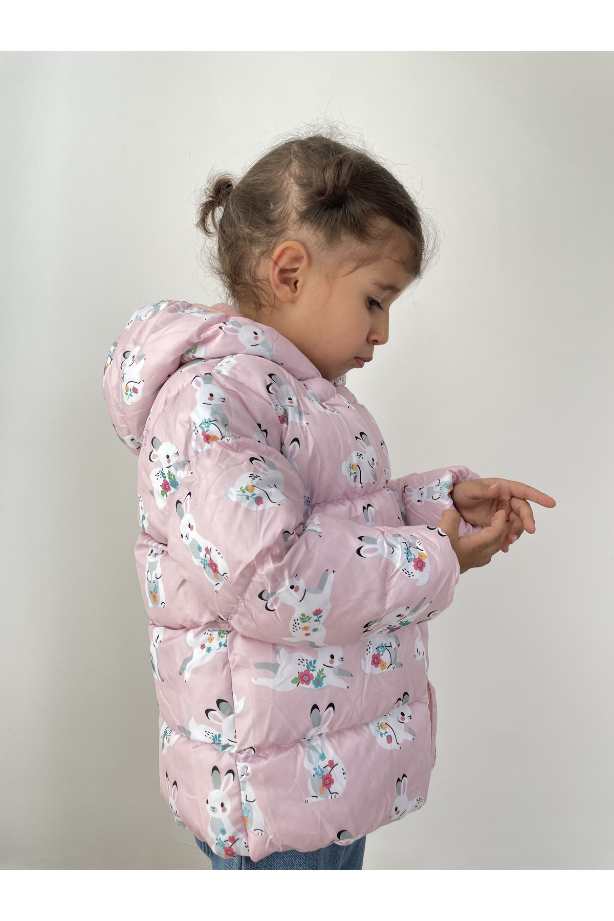 خرید اینترنتی کاپشن نوزادی دخترانه پفی کلاه دار طرح دار، آستر نرم از پشم گوسفند برند اورجینال از LEONE GYM نمایندگی و فروشگاه معتبر ترکیه