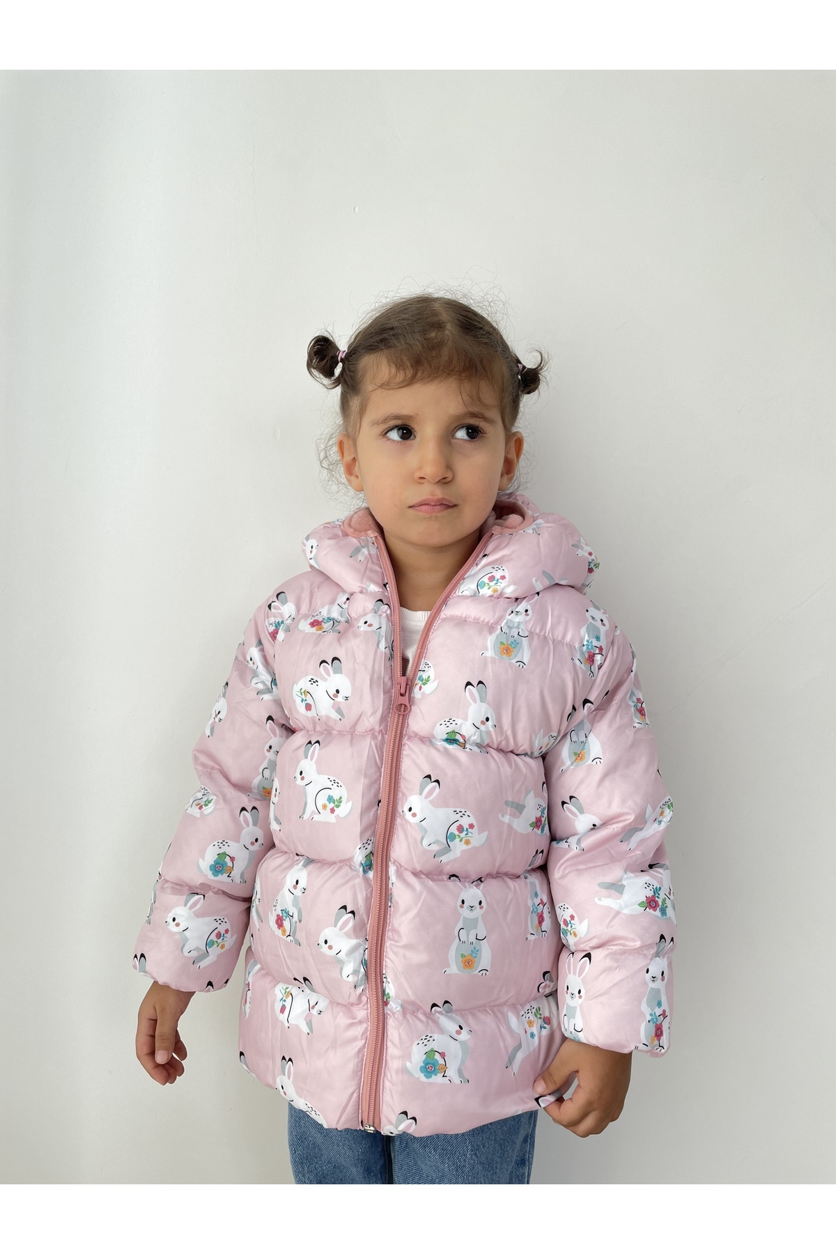 خرید اینترنتی کاپشن نوزادی دخترانه پفی کلاه دار طرح دار، آستر نرم از پشم گوسفند برند اورجینال از LEONE GYM نمایندگی ترکیه