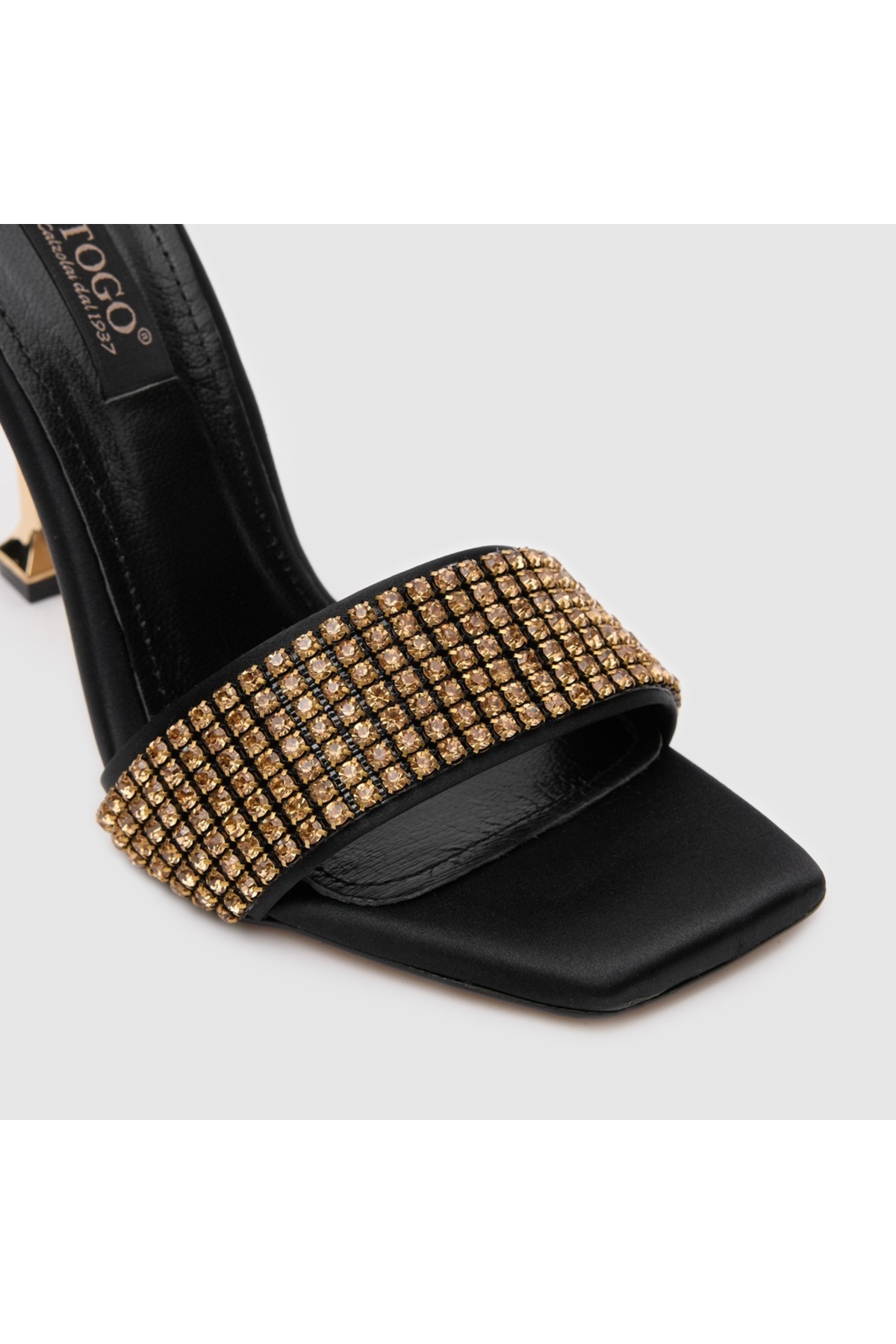 خرید اینترنتی دمپایی مجلسی زنانه مشکی ساتن طلایی [060238] برند توگو Togo اورجینال از TOGO نمایندگی و فروشگاه معتبر ترکیه