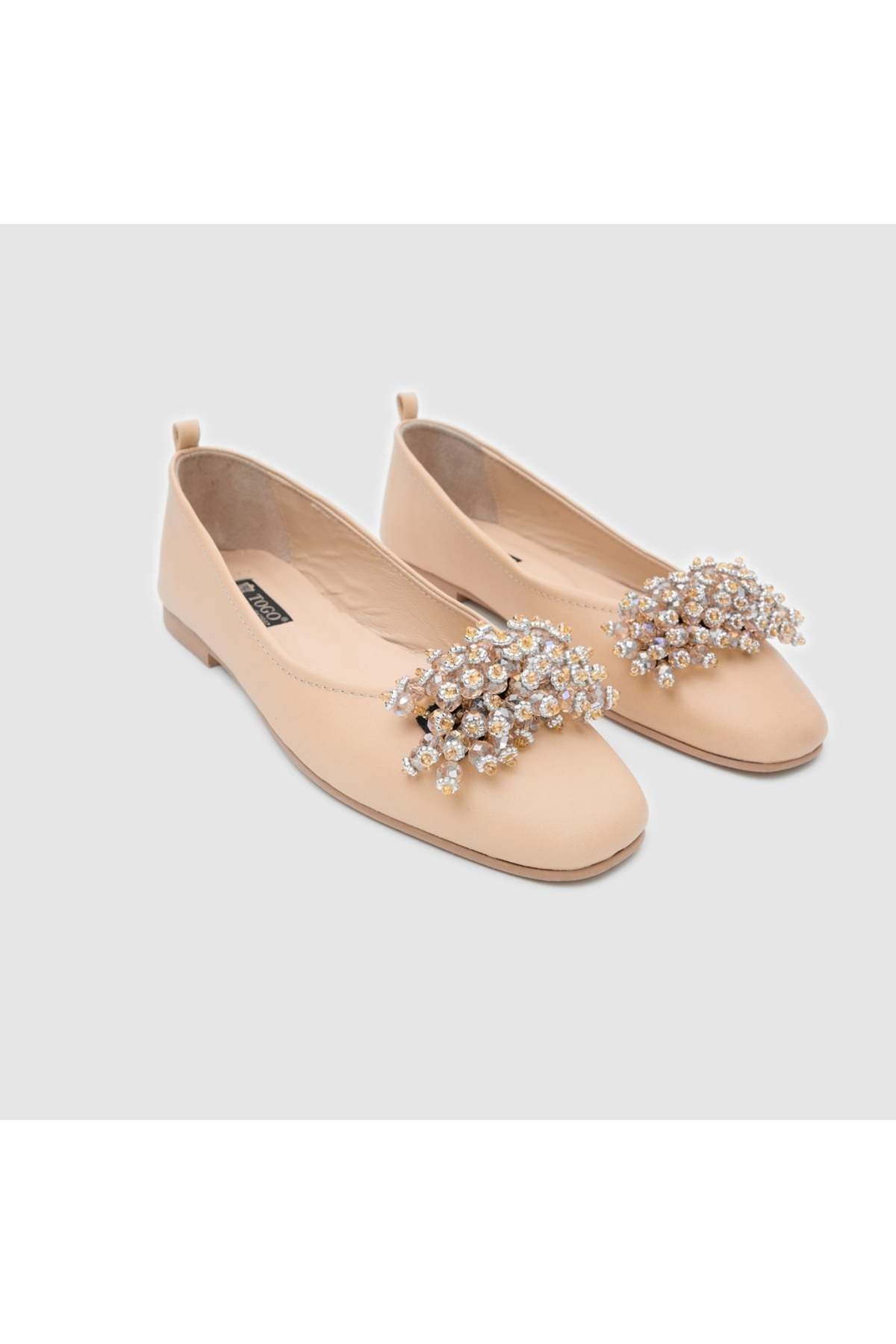 خرید اینترنتی کفشهای باله زنانه چرم اصل نود با تزئینات سنگی [060228] برند توگو Togo اورجینال از TOGO نمایندگی ترکیه