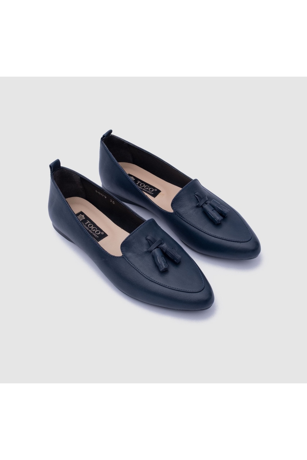 خرید اینترنتی کفشهای باله زنانه چرم اصل سرمهای [051626] – کف تخت با جزئیات پاپیونی برند توگو Togo اورجینال از TOGO نمایندگی و فروشگاه معتبر ترکیه