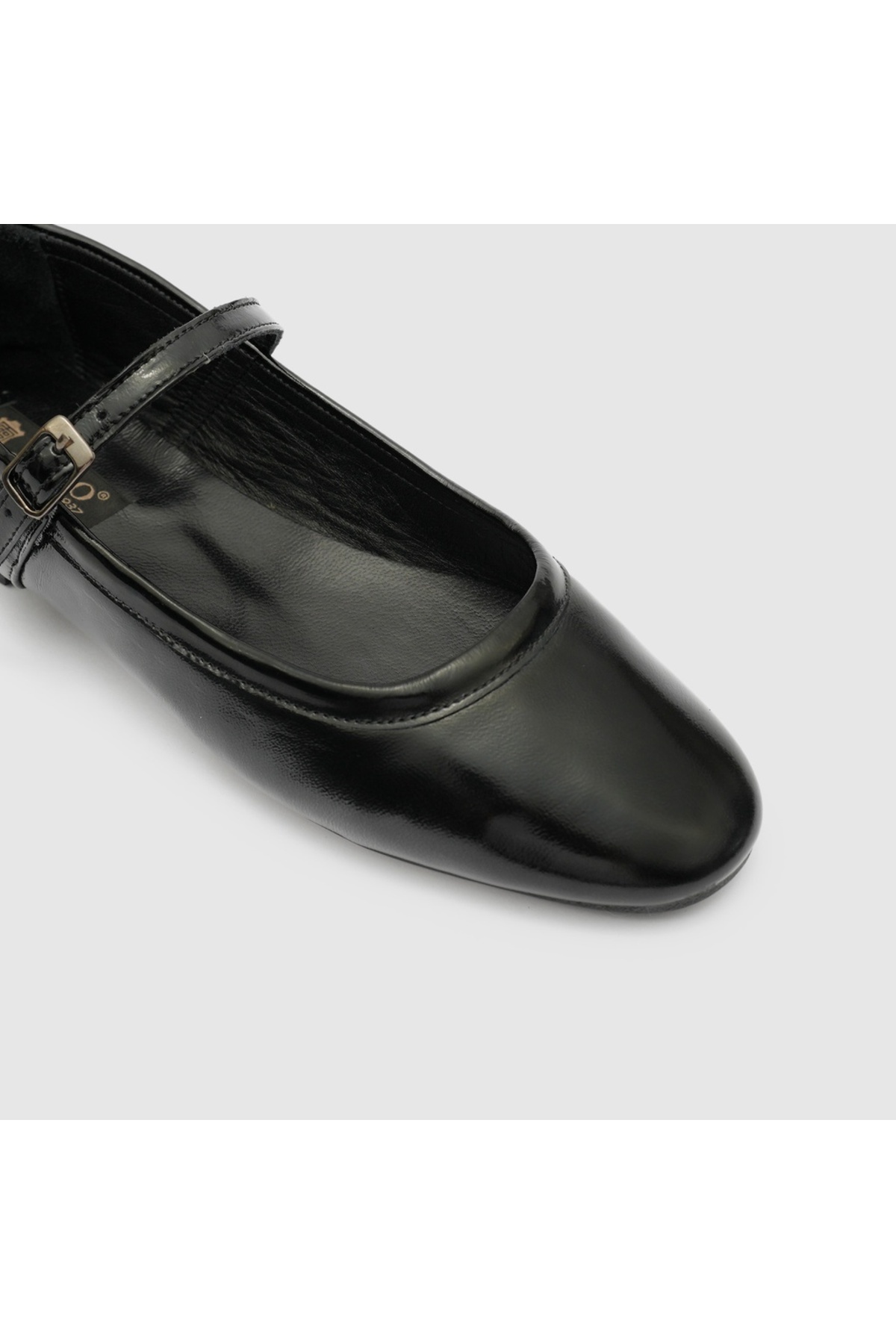 خرید اینترنتی کفش‌های باله زنانه چرم اصل طرح‌دار مشکی [060259] برند توگو Togo اورجینال از TOGO نمایندگی ترکیه