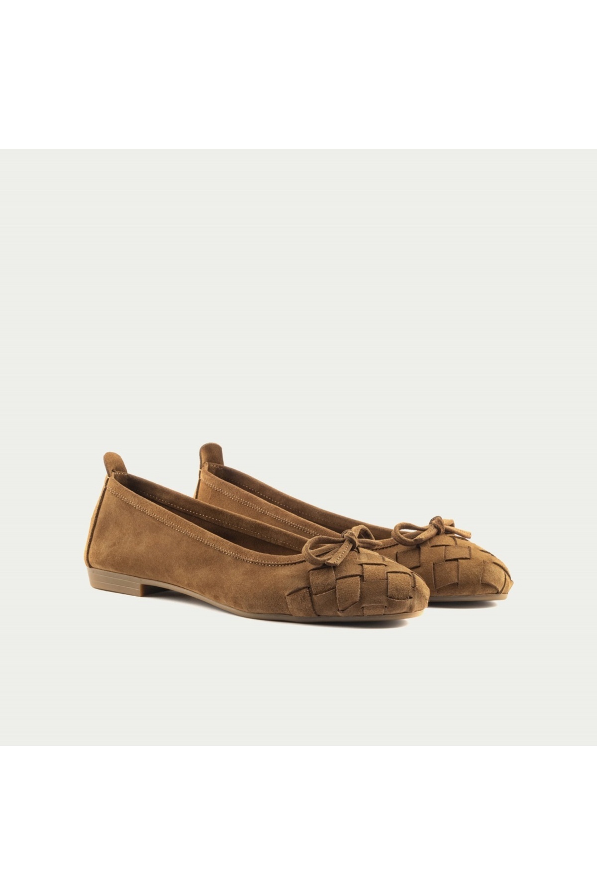 خرید اینترنتی کفشهای باله زنانه چرم اصل جیر قهوهای روشن [060114] – کف تخت با جزئیات پاپیونی برند توگو Togo اورجینال از TOGO نمایندگی ترکیه