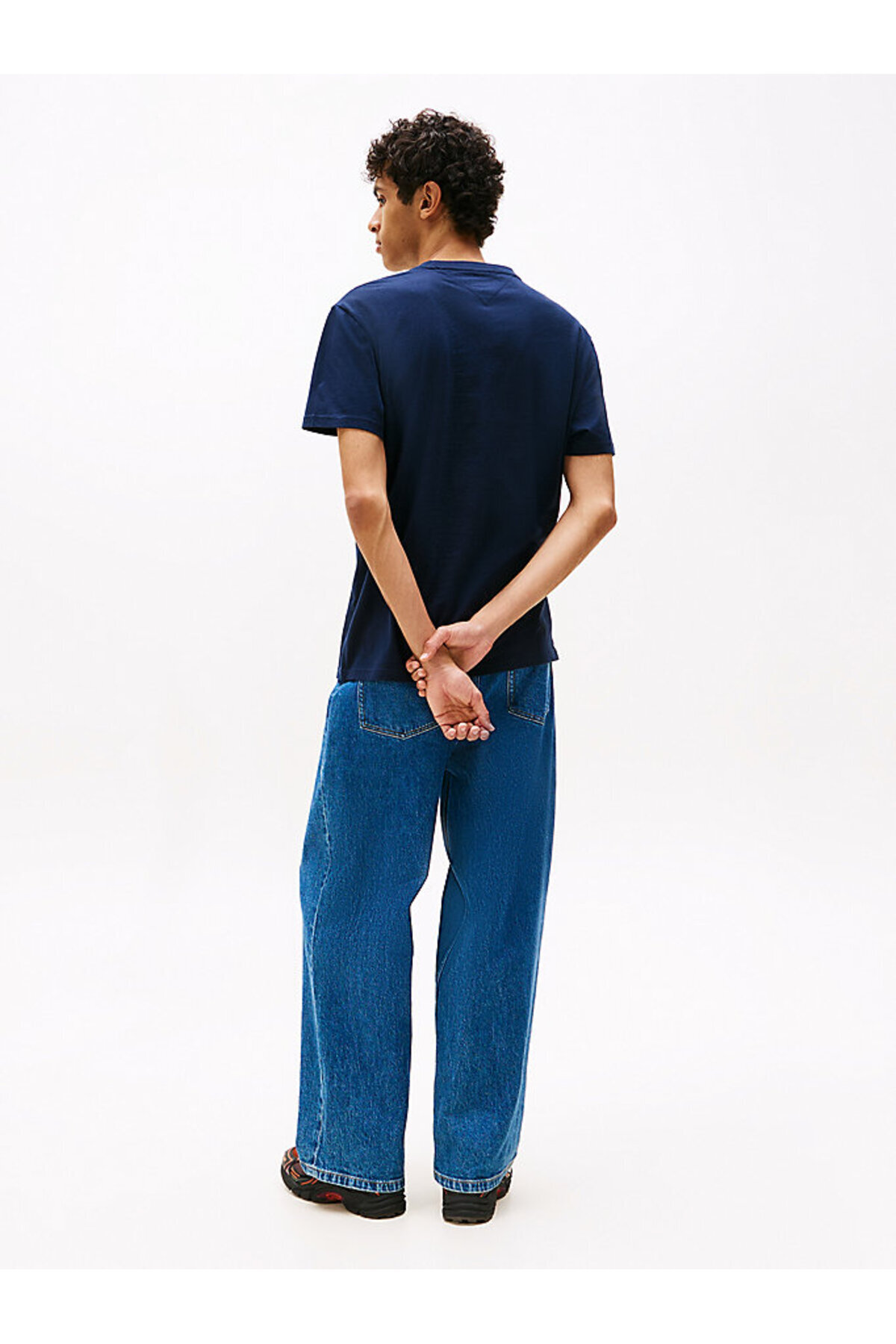 خرید اینترنتی پیراهن یقه گرد مردانه طرح برند از جنس پنبه ارگانیک، مناسب برای استفاده روزانه، رنگ سرمهای، کد 1 برند تامی هیلفیگر Tommy Hilfiger اورجینال از FashionHub نمایندگی و فروشگاه معتبر ترکیه