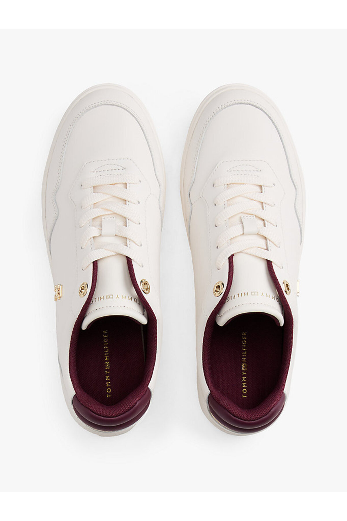 خرید اینترنتی کفش کتانی زنانه TH Monogram Plaque Court – سفید/شرابی برند تامی هیلفیگر Tommy Hilfiger اورجینال از Docca Collection نمایندگی ترکیه