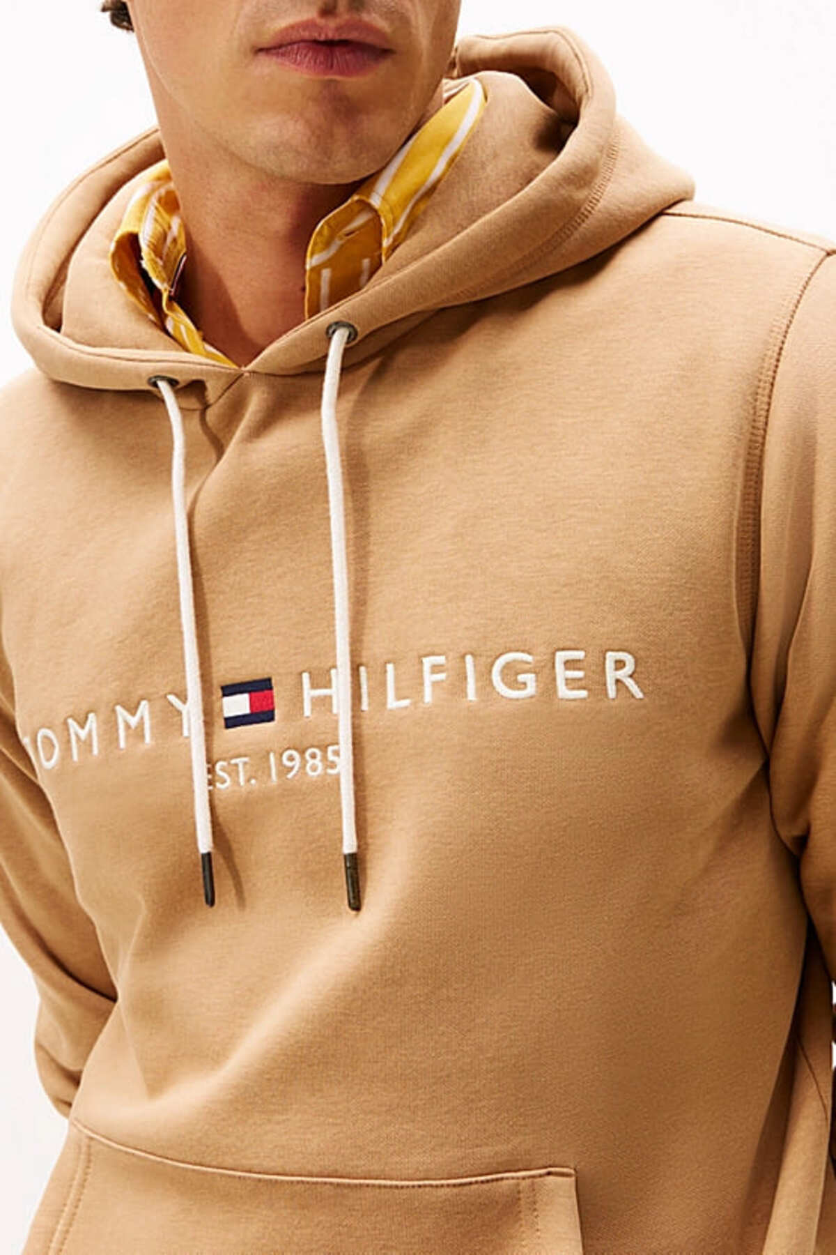 خرید اینترنتی سویشرت مردانه کلاهدار سایز معمولی با لوگو – رنگ شتری روشن برند تامی هیلفیگر Tommy Hilfiger اورجینال از Wejaar نمایندگی و فروشگاه معتبر ترکیه
