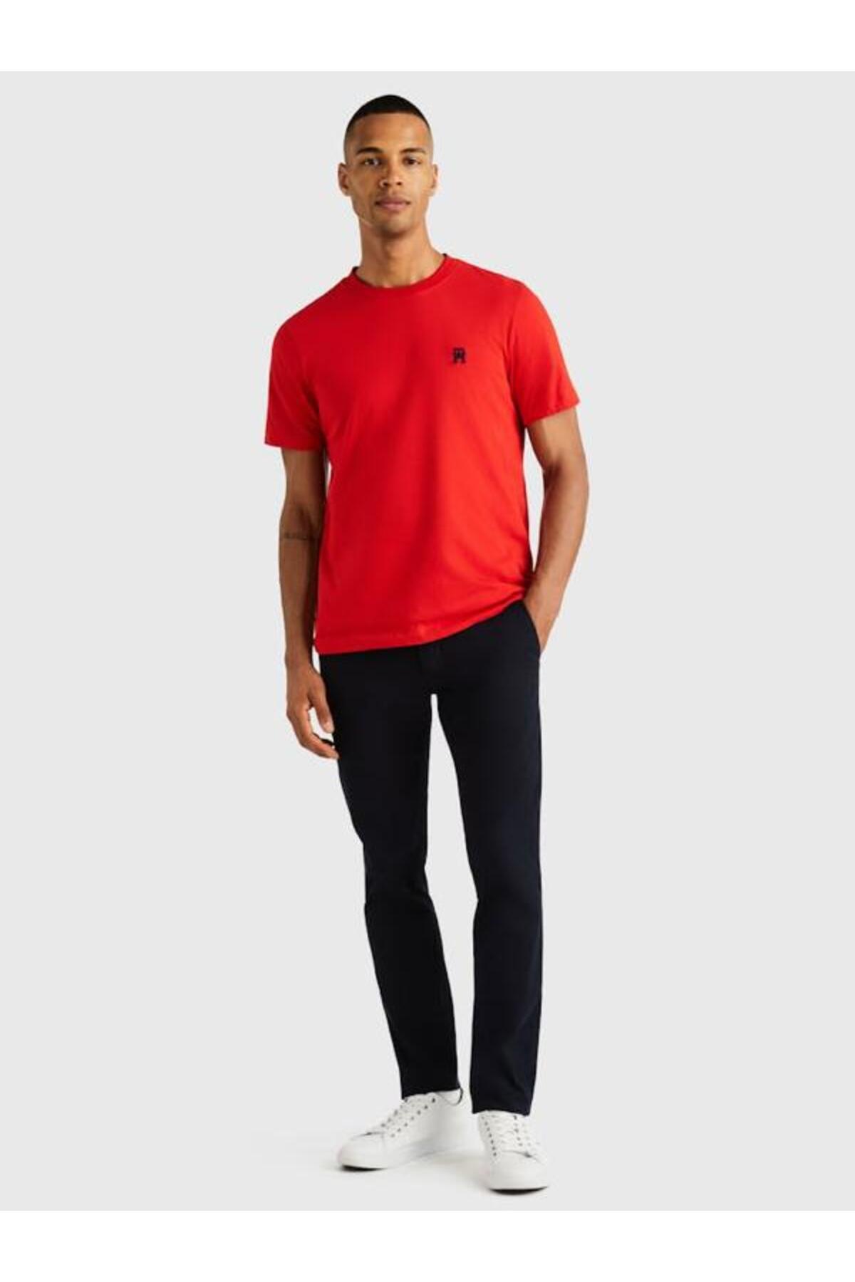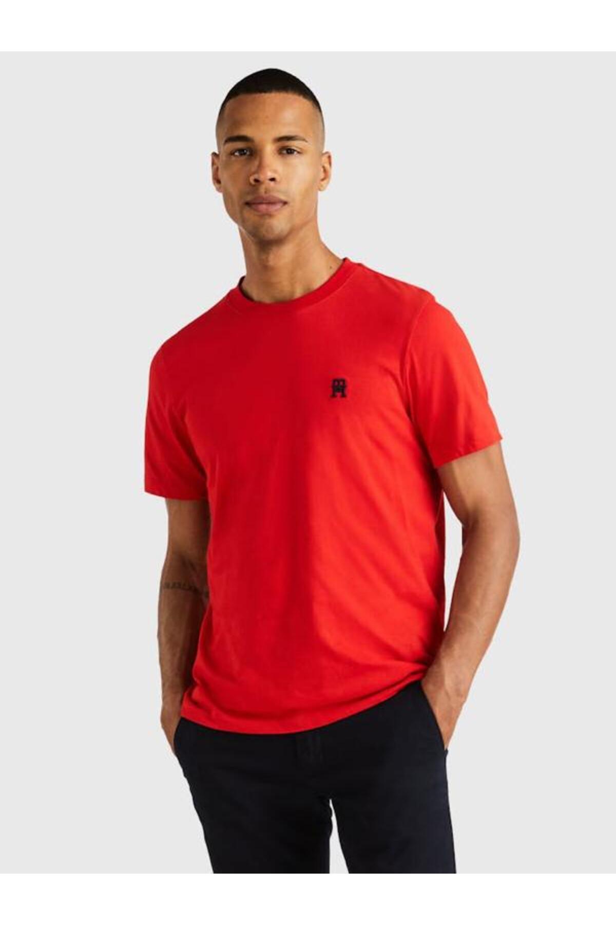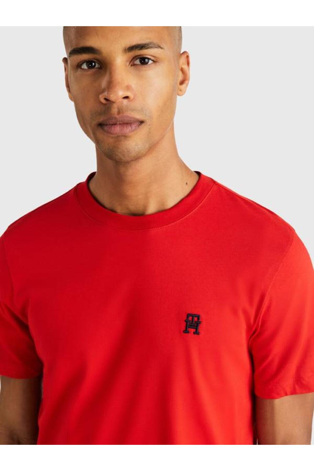 خرید اینترنتی تیشرت یقه گرد گلدوزی شده با مونوگرام TH برند تامی هیلفیگر Tommy Hilfiger اورجینال از ATLAS BRAND نمایندگی ترکیه