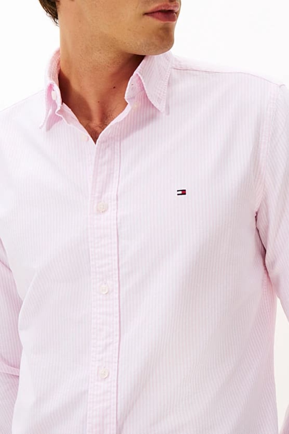 خرید اینترنتی پیراهن مردانه آکسفورد نخی راه راه معمولی – صورتی برند تامی هیلفیگر Tommy Hilfiger اورجینال از MarkaPlus نمایندگی و فروشگاه معتبر ترکیه