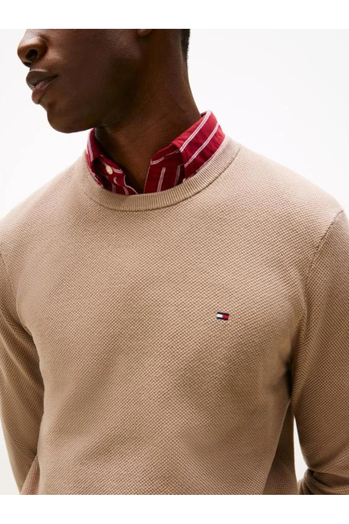 خرید اینترنتی ژاکت بافتدار کلاسیک مردانه یقه گرد بژ MW0MW36347AFE برند تامی هیلفیگر Tommy Hilfiger اورجینال از Docca Trendy نمایندگی ترکیه
