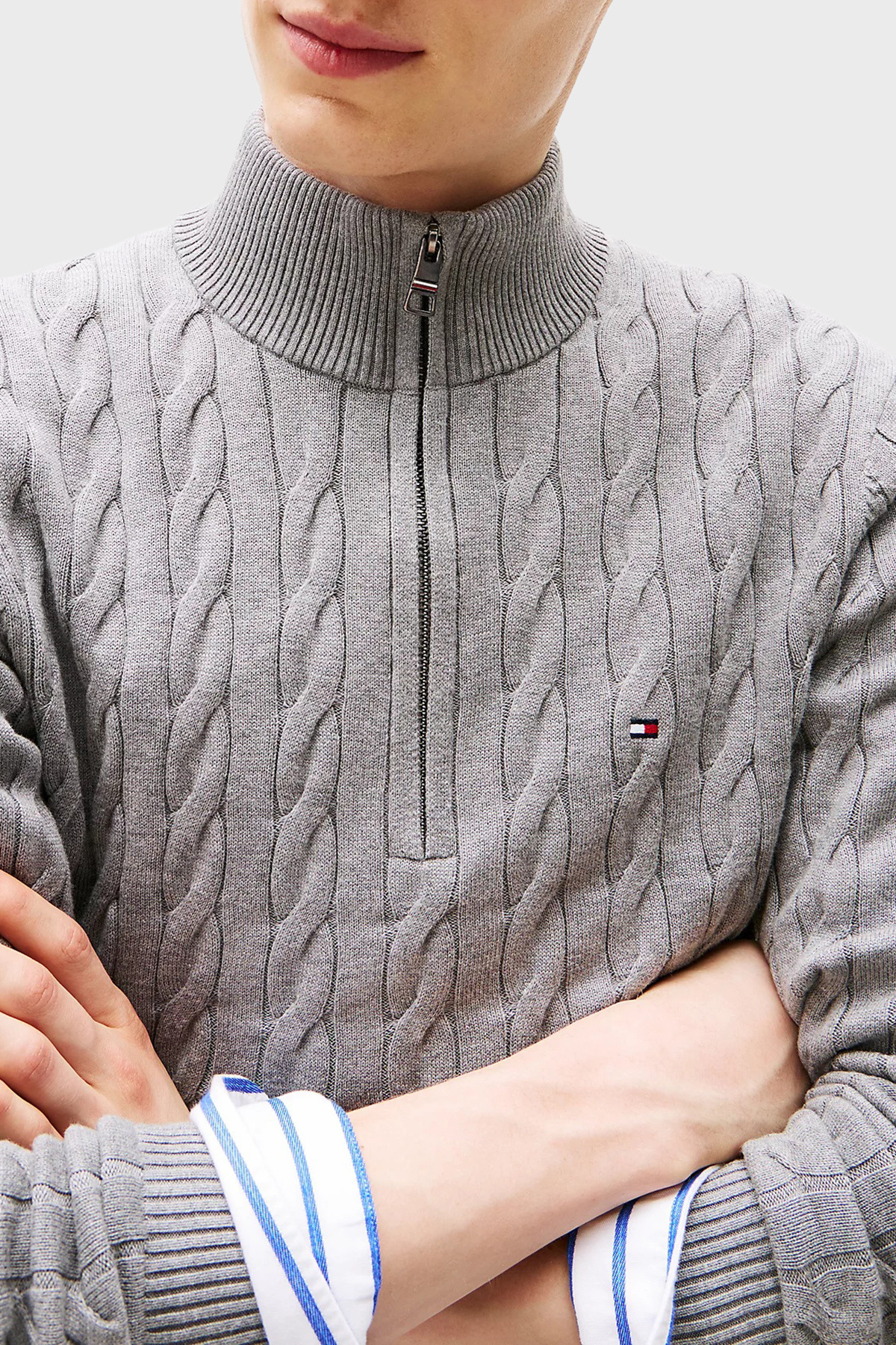 خرید اینترنتی ژاکت مردانه یقه ایستاده نیم زیپ نخی معمولی MW0MW36532 P91 برند تامی هیلفیگر Tommy Hilfiger اورجینال از ExxeSelection نمایندگی ترکیه