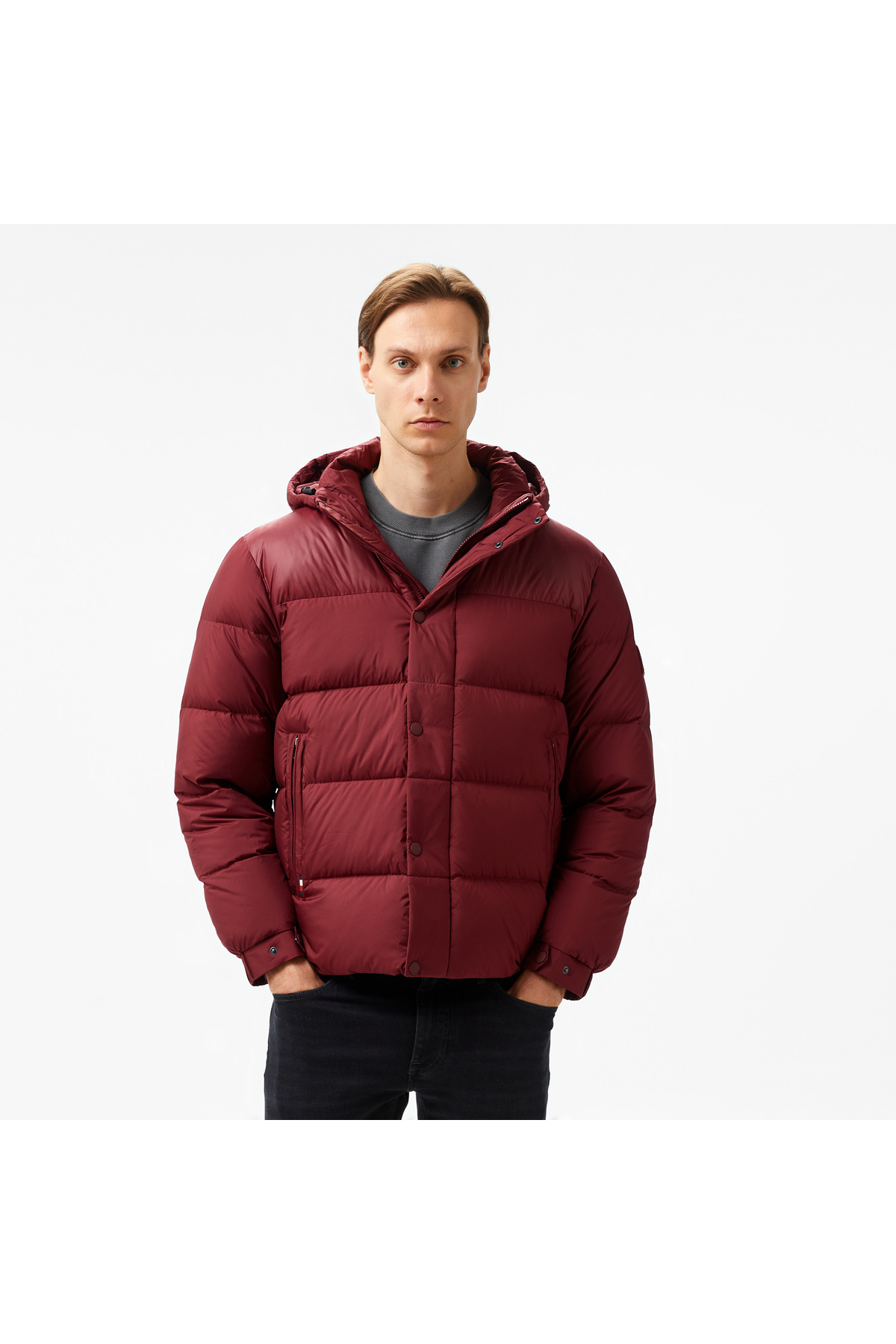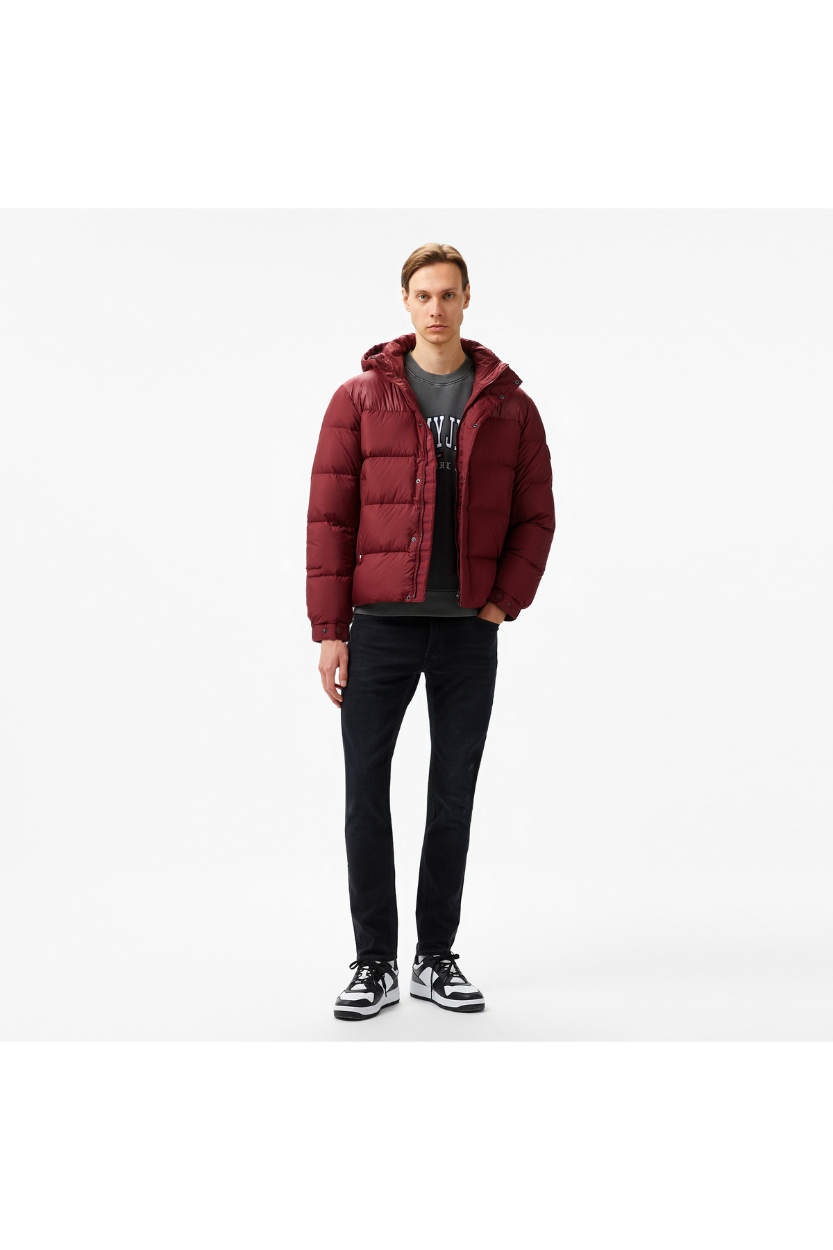 خرید اینترنتی کاپشن مردانه یقه کلاهدار و پددار با جزئیات برند و زیپ، زرشکی MW0MW36569-VLP برند تامی هیلفیگر Tommy Hilfiger اورجینال از Occasion نمایندگی ترکیه